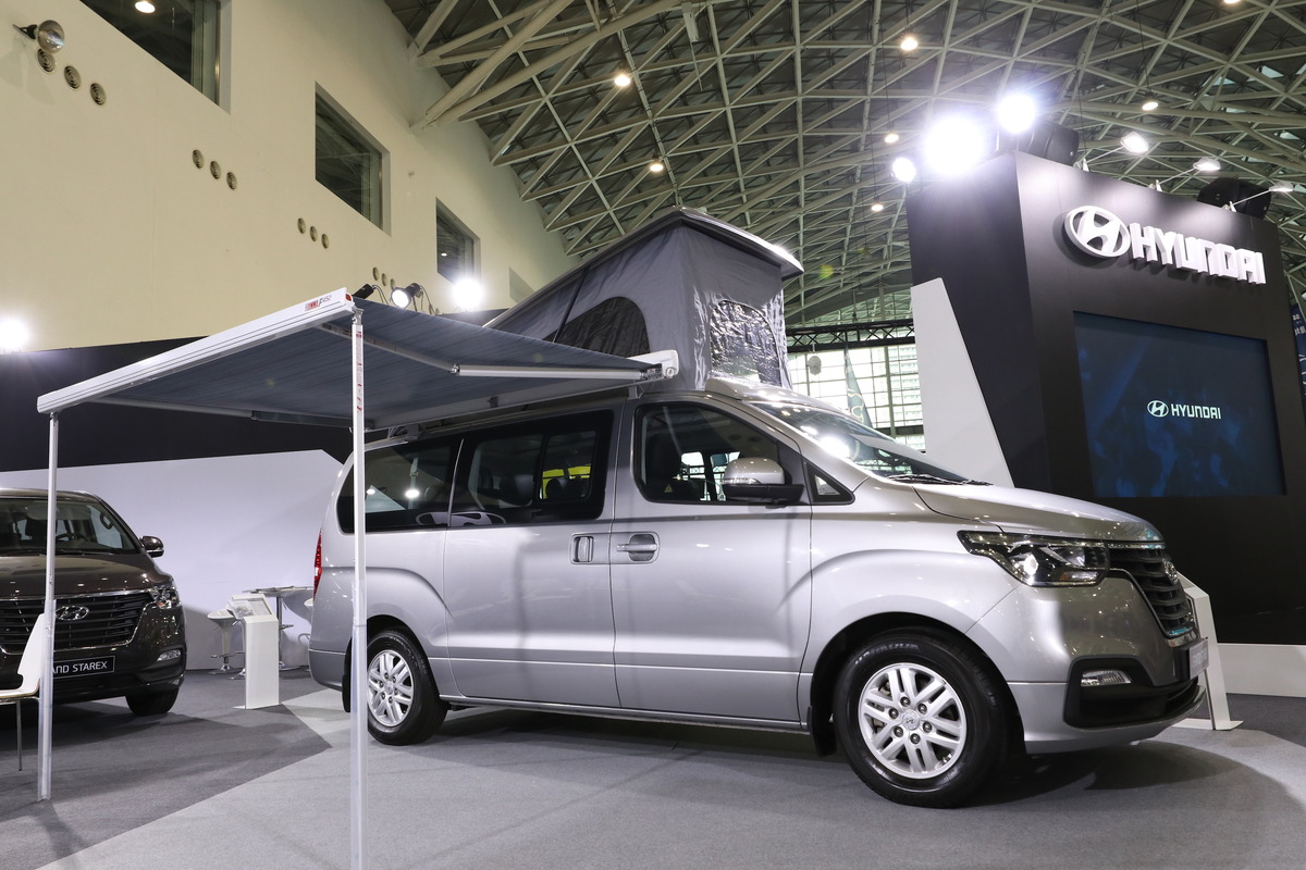 2018年底發表的全新改款八人座豪華商旅GRAND STAREX,透過全新大型氣壩的氣勢外觀展現歐風商旅新風貌,結合舒適寬敞的豪華座艙,成功吸引買家目光之外,隨著國內近年露營熱潮興起,同步展出全新GRAND STAREX掀頂露營車,不僅車頂增加可容納兩位成人空間的隱藏式伸縮車頂帳設計,搭配車側寬敞的車邊帳,在大自然中營造宛如在家客廳般的舒適氛圍,為露營帶來不同的體驗,滿足喜愛一面自駕同時享受遊山玩水樂趣的品味玩家。GRAND STAREX搭載排氣量2.5升可變幾何渦輪柴油引擎,提供170ps最大馬力與45kgm的峰值扭力,結合前麥花臣、後多連桿獨立懸吊及後輪驅動配置,有效降低晃動,提升每位乘客乘坐的舒適性。行車安全科技方面,全車標配ASL防爆衝自排鎖、ESC電子車身穩定系統、ABS防鎖死煞車系統、TCS循跡防滑控制系統、EBD電子煞車力道分配系統、雙前座輔助氣囊、光感應自動啟閉頭燈、ISO FIX兒童安全座椅固定裝置、TPMS胎壓偵測系統、車門防撞鋼樑以及倒車雷達系統;此外,旗艦款搭載增加雙前座側邊氣囊、四路行車視野輔助系統、BSD盲點偵測警示系統、LCA車道變換警示系統、RCTA後方交通警示系統,提供乘客與家人更全面的安心防護。