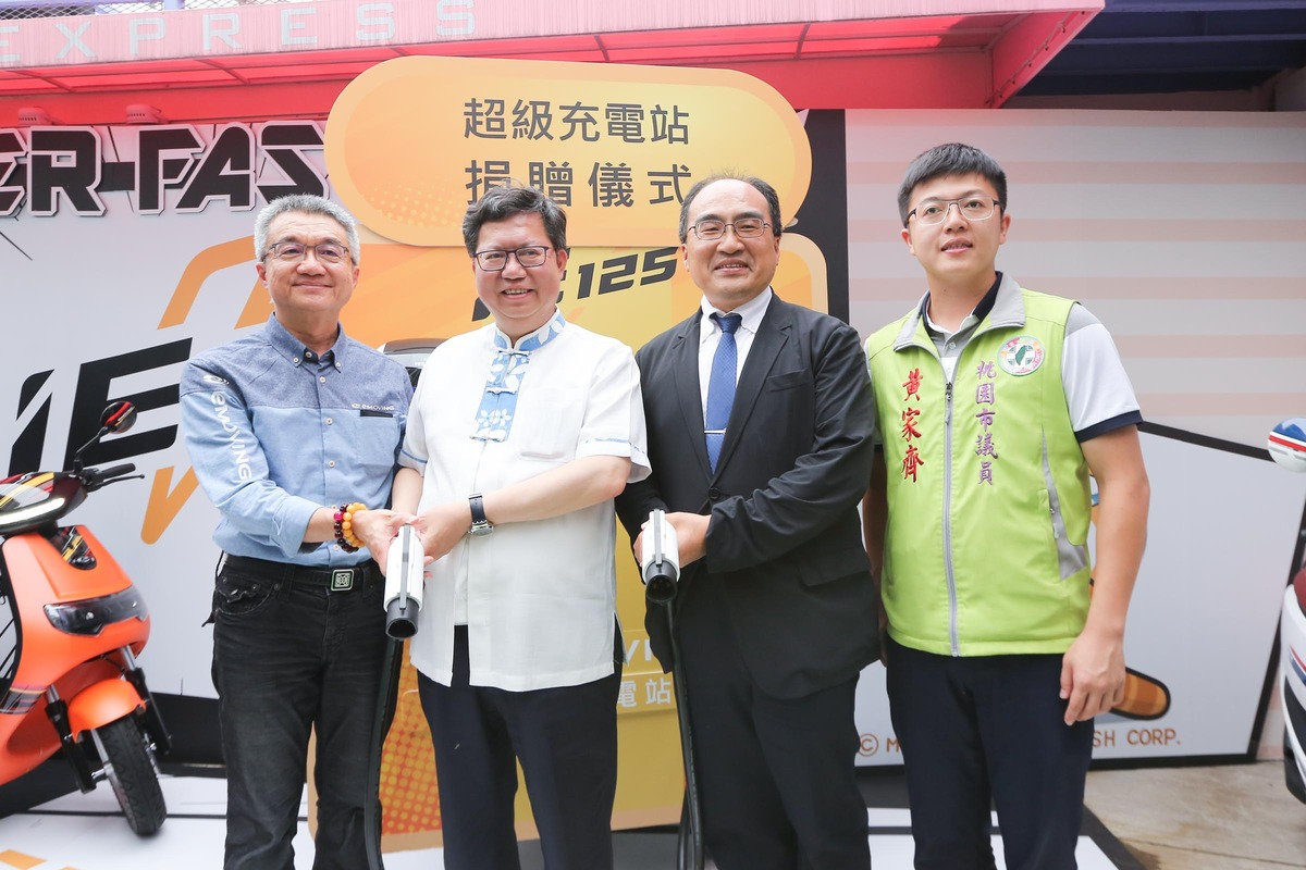 桃園市政府長期以來對電動機車購車補助、公務機車電動化比例及充電插座建置數量皆為各縣市最高,中華汽車為配合桃園市政府發展智慧充電示範區願景,捐贈桃園市政府5座超級充電站,一起打造低碳城市、智慧充電的環境推廣共同努力。