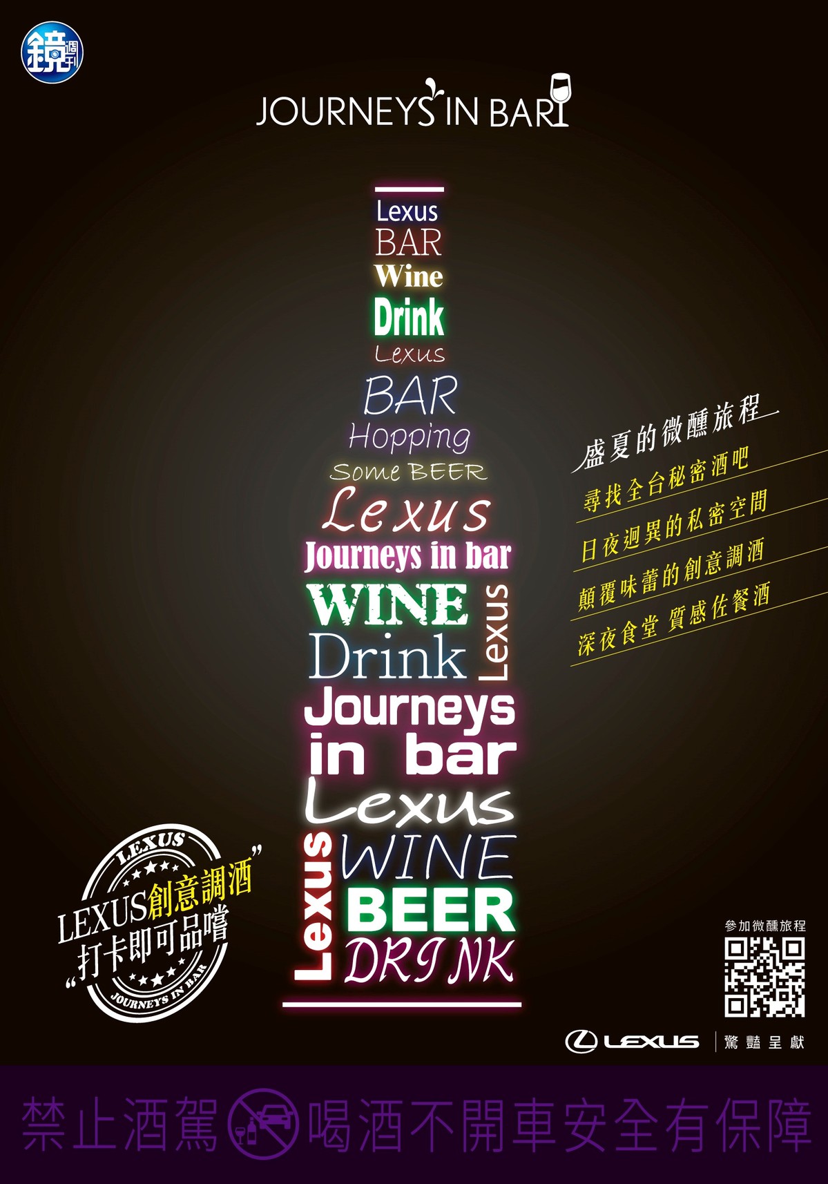 創造獨特的品味,向來是LEXUS在設計和研發新車上所追求的目標。今夏,LEXUS特別企劃『JOURNEYS IN BAR』活動,與鏡周刊聯名合作,精選全台特色酒吧,以LEXUS冒險、創新和職人工藝精神,為LEXUS打造專屬調酒,邀請貴賓透過味蕾與視覺的沉浸,感受LEXUS令人驚艷的品牌魅力。