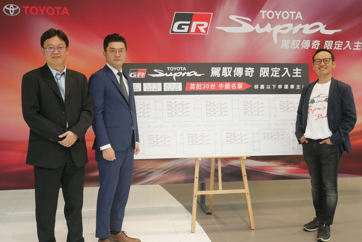 TOYOTA總代理和泰汽車,於7月30日在律師與稽核室人員之見證下,抽出首批30台入主TOYOTA GR Supra的幸運中籤車主。短短一個月的預購期間,完成登記抽籤程序的顧客總計約達1,200台,顯見台灣消費者對於GR Supra的喜愛。