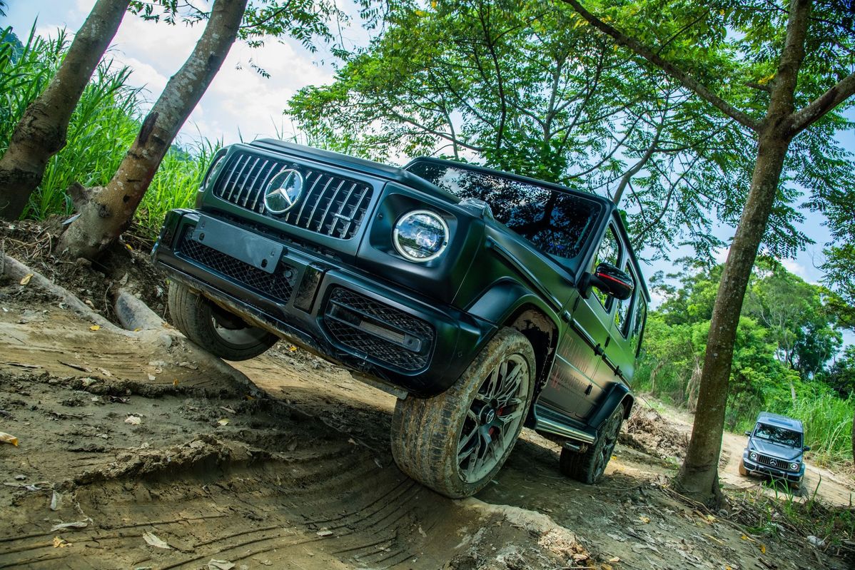 台灣賓士也特別安排了地表最強悍豪華越野運動休旅大軍的王者代表 G 63 讓媒體體驗極限越野課程,G 63 動力搭載 4.0 升雙渦輪增壓 V8 汽油引擎,585hp 最大馬力與 850Nm 峰值扭力輸出,搭配 9 速手自排變速箱與 AMG Performance全時四輪驅動,與生俱來的征服力相信是許多媒體所心神嚮往的夢幻車款。在台灣賓士所安排的極限越野場地中,包含傘兵坑、陡坡緩降、險升坡衝刺、泥濘脫困、穿越駝峰、大落差剛性測試等關卡中,G 63 展現強悍「三軸差速鎖定功能」越野科技的實用性,在 V8 聲浪中輕鬆征服各種險惡地形,展現 Mercedes-Benz 豪華越野運動休旅軍王的磅礡氣勢。