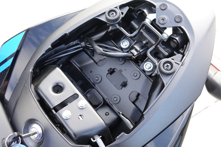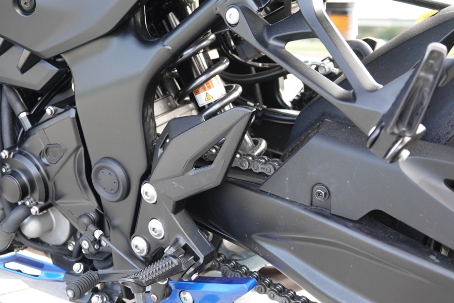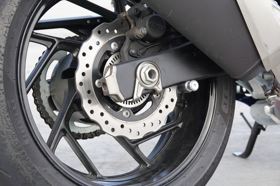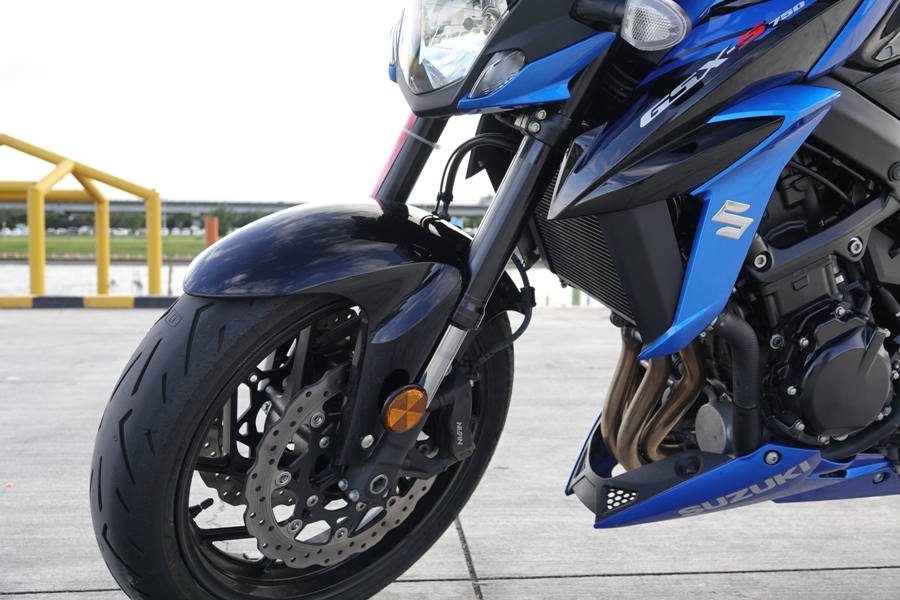 前懸吊避震器是採倒叉式,還是日本KYB名廠的產品,預載可調軟或硬,不是軟就是硬,沒太多選擇,簡單明瞭,後懸吊為單槍避震器,有7段可調,實際在山路及一般市區道路騎乘,過彎也許沒有純跑犀利精準,但也可還是能享受過彎的樂趣,而在市區騎乘時,隨心所欲穿梭車陣更是稀鬆平常,低速走走停停時,低速輔助操駕系統可以幫助起步不再熄火,加上Easy Start System,按一下啟動鈕就可以發動引擎,更加簡單方便。