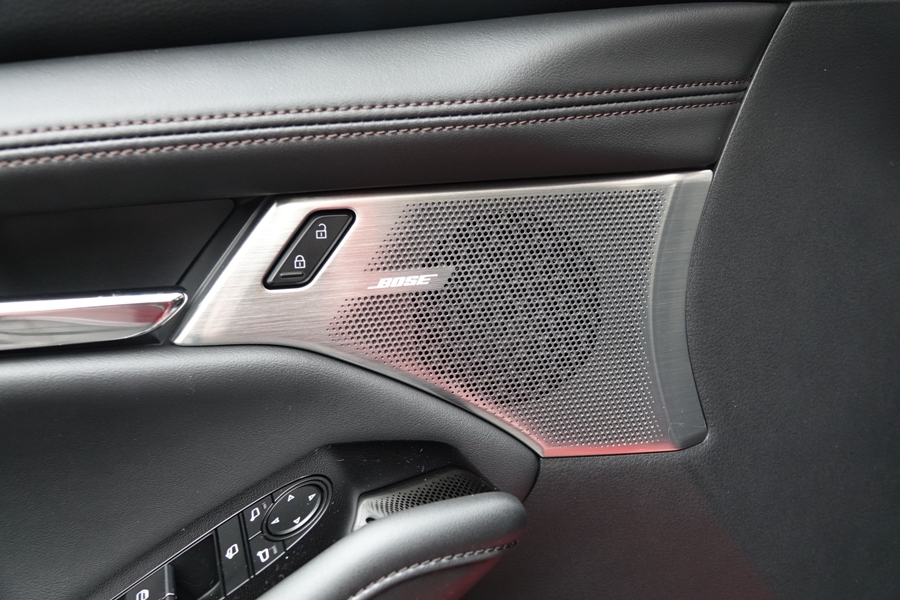 如選擇BOSE®旗艦型,就能享用12具揚聲器組成的BOSE®環繞音響系統。MAZDA在開發時期已融入音場想法,優先考量揚聲器的位置,這套系統經過專業調音師調整全車音場位置,中高頻揚聲器移至車門上方,中央揚聲器位於儀表板中央,低音喇叭設在車頸兩側,後廂則有衛星音箱與重低音,營造出專業音場。