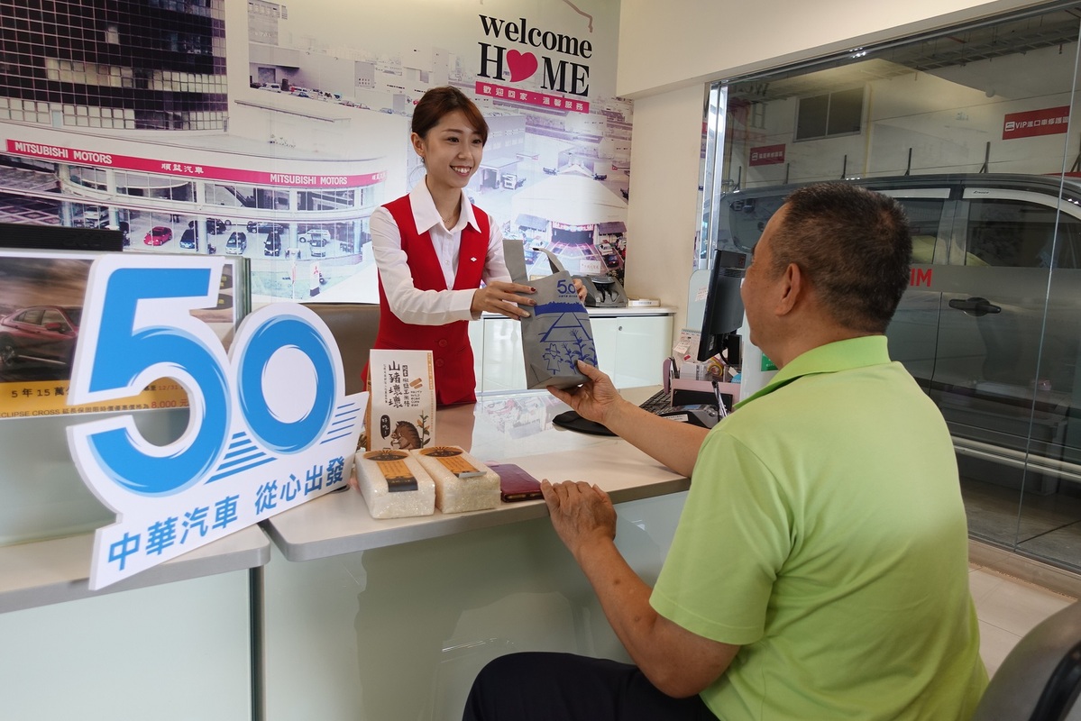 為歡慶中華汽車50周年,中華三菱特別舉辦「三菱回饋日」活動 ,7-12月每月30日回廠保養消費滿1,000元以上,即贈送三菱好禮一份(每月限量3000份,送完為止)。中華汽車長期支持原民產銷,不忘將資源回饋至偏鄉小農及社福團體,在每月的「三菱回饋日」中特別選用花蓮「山豬壞壞微甜椒鹽玉米棒」、台東「孩子的書屋-黑孩子太陽米」、屏東「善導書院-蔬果乾」及心路社會福利基金會「幸福樂手-手工餅乾」等多項公益好禮,預計將投入近2百萬元至社福團體,讓車主回廠保養時還能與中華三菱攜手送愛,協助社福團體募集經費。