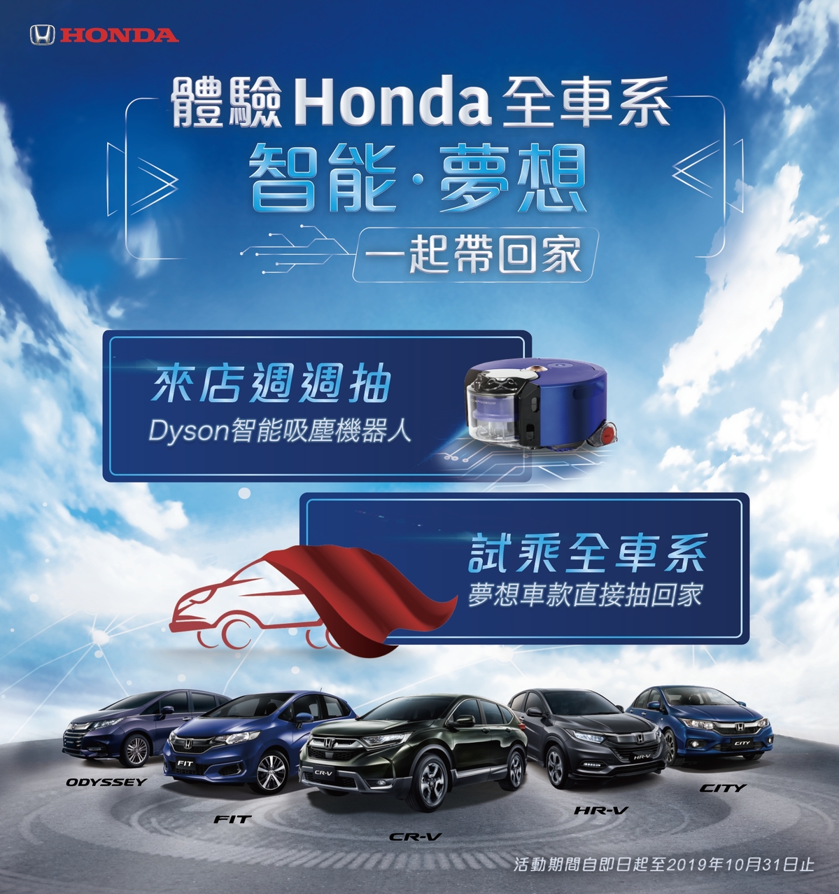 傳統重要節慶-中秋節即將來臨,喜歡Honda 車款的朋友看過來! Honda Taiwan 為了歡慶傳統三大節慶之一的中秋節,特別為了廣大消費者獻上「智能夢想歡樂好禮」,即日起,全國Honda Cars同步啟動「體驗Honda全車系 智能夢想一起帶回家」之系列活動,凡於活動期間內來店、達成指定任務,並至全國Honda Cars完成最後關卡,即可參加-「來店週週抽Dyson智能吸塵機器人」活動;凡於活動期間內完成試乘、並登錄抽獎用個人資料,即可參加-「夢想車款直接抽回家」活動,幸運得獎車主有機會將所試乘的車款直接抽回家;此外,凡符合資格者,可享5萬元舊換新補助,敬請 廣大消費者把握本月最佳購車良機。