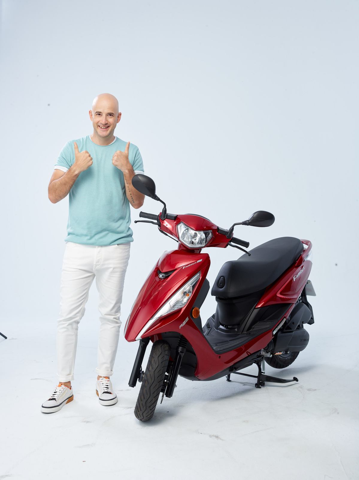 晴朗的天氣,片場傳來爽朗的笑聲,仔細一看原來是台灣女婿吳鳳,與工作人員熱絡寒暄。談起擔任KYMCO新名流車系的代言人,吳鳳興奮的自爆,早在土耳其時,因妹夫家曾是KYMCO海外的經銷店家,當時就已得知KYMCO是很知名的品牌,還因為想念家鄉,第一台機車特地選了土耳其國旗紅白色調的KYMCO機車,沒想到現還代言品牌的暢銷車款。如此深的淵源,加上幸福美滿家庭、長期關心環保議題的形象,讓代言人選擇一向精準的KYMCO一眼相中,促成了此次合作契機。來到台灣13年的他,感性表示:「來到台灣經歷過很多身分的轉變,感謝KYMCO的車伴隨了我生命中無數個幸福的時刻,現在的我平時也會載老婆來場摩托車約會,也期待未來女兒長大了,能騎著機車載著女兒一起環島,感受台灣的美好。而廣告中的片段也都真實呈現我在台灣的生活,非常的感動!」此番溫馨的告白,也呼應了吳鳳在廣告中提到的:「謝謝新名流歐兜麥,給我水某,給我工作,還給我媽祖,乎我幸福攏抵家!」。