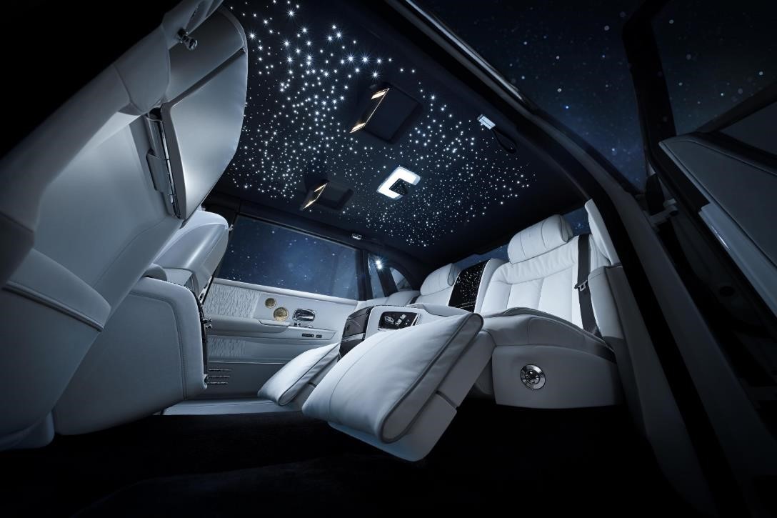進入車內除了撲鼻而來的皮革香氣,抬頭仰望便可看到勞斯萊斯汽車著名的“星光頂篷”﹐這最獨特的選配是由1,340根手工編織的獨立光學纖維組成,可以組成任何形狀,比如車主的生日或星座輪廓。今年5月剛剛發佈的Wraith Eagle VIII典藏版,最引人注目的設計項目之一就是超凡出眾的星空車頂。1,183個星光纖維光束佈局成1919年人類歷史上首個跨越大西洋不間斷飛行之夜的星空,飛行路線和星座則以黃銅線刺繡而成,星光頂篷上還手工繡出了雲層。用勞斯萊斯特有的方式紀念意義非凡的歷史時刻,也再次證明勞斯萊斯不僅僅製造汽車,而是通過獨特的設計,為每一輛勞斯萊斯汽車注入個性和靈魂,使勞斯萊斯成為具有收藏價值和意義的藝術品。