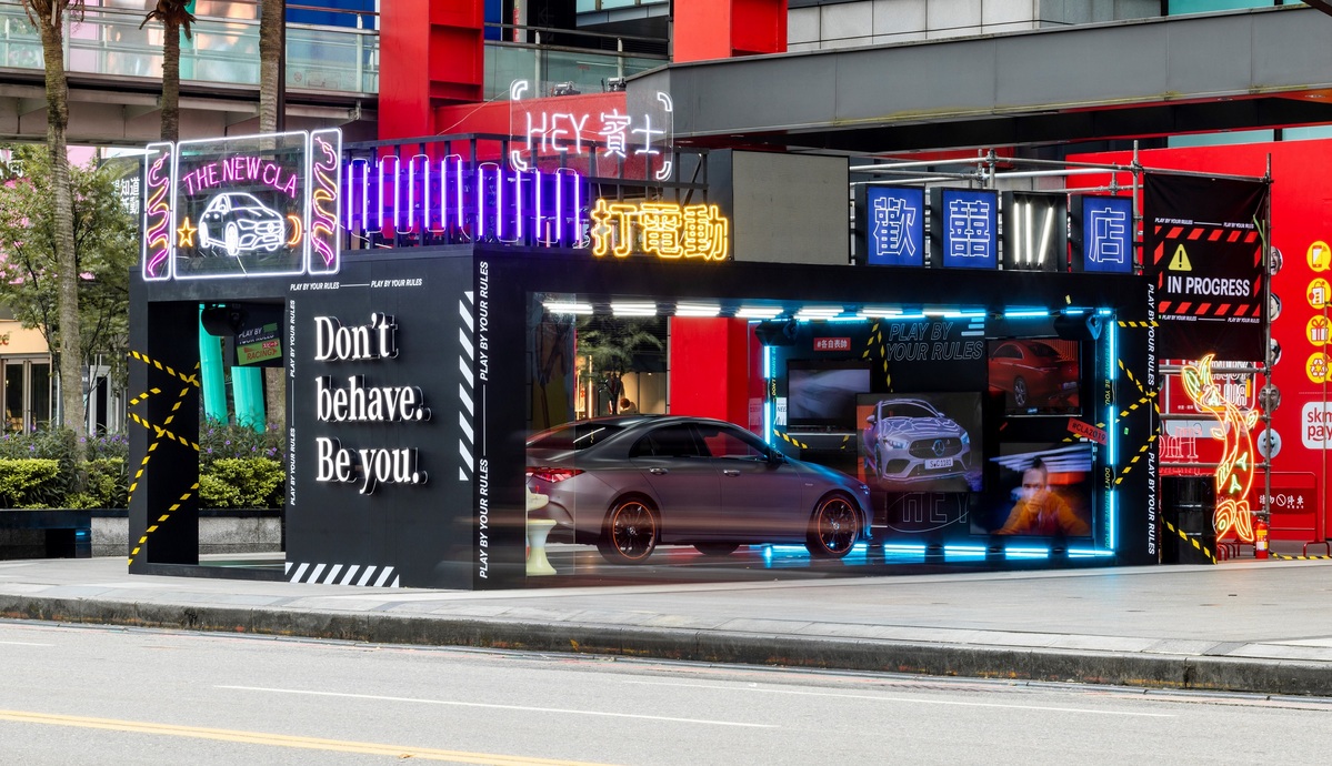 為了傳遞 The new CLA「各自表帥」的態度,台灣賓士即日起進駐台北信義新光三越A8前廣場,將「The new CLA 酷玩派對」中猶如電域叛客(Cyberpunk)般的虛擬城市場景移至戶外,限時限地舉辦「The new CLA 街頭展示會」。