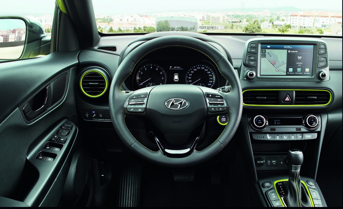 擁有時尚感滿分的外觀,KONA在內裝設計同樣不遑多讓,在美國權威雜誌WardsAuto評鑑中,KONA成為唯一非豪華汽車品牌中,得到全球十大最佳內裝大獎的肯定。中控台以海灣為靈感設計,流暢型的線條個性十足。內裝同樣以Two-Tone撞色的設計概念,從安全帶、空調面板、排檔座、出風孔等細節外框,採用熱情的鮮紅色調映襯,時髦有型!