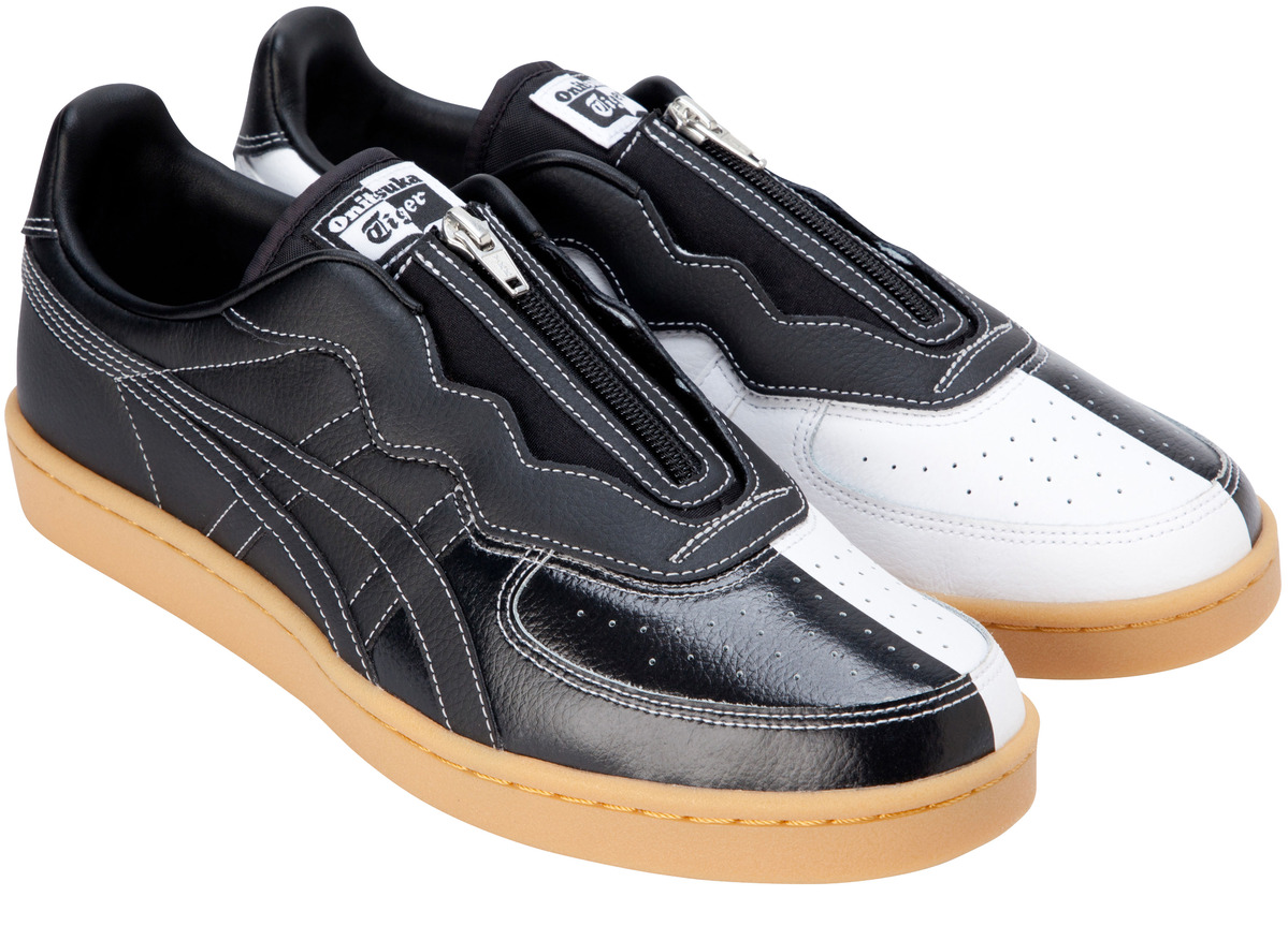 Kye說:「我希望穿著這個系列的人就像閃耀的明星。」她以白天和黑夜為靈感,創作出GSM™鞋款的全新風貌:黑白對比色塊搭配鮮明的白色縫線,鞋舌上的品牌LOGO也可見黑白相映的細節巧思,大膽地在足尖繪出日晝與闇夜的變幻。鞋上的拉鍊巧妙地與外套呼應,為本系列增添整體感。Onitsuka Tiger x KYE聯名外套與長褲皆採黑底色,並飾以醒目的白色星星,在衣著上展現明亮的星夜。側面的紅白雙線條則為整體設計增添立體感,此外,外套的拉鍊放上Onitsuka Tiger與KYE的雙LOGO,以慶祝本次的聯名合作。