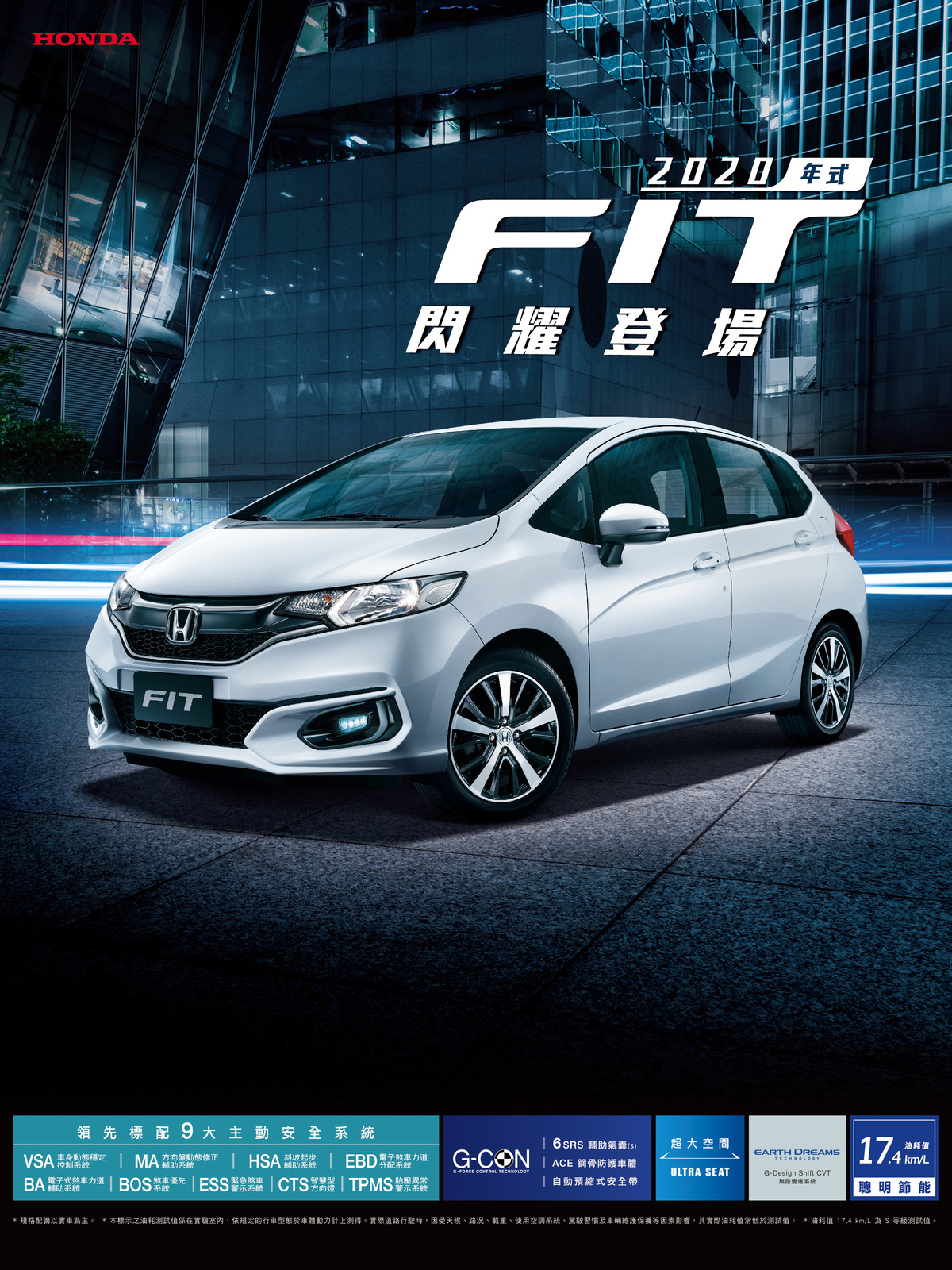 Honda Taiwan為了擴大顧客喜悅,自11月起將以超越自我為目標,針對旗下最受年輕族群嚮往喜愛的Honda FIT推出「2020全新年式」車款,本次改款重點將深受顧客好評的「LED晝行燈」、「光感應自動頭燈」列為標準配備,以主動安全、便利科技再進化為改款目標,更輔以原有的9大主動安全系統及極致被動安全,樹立安全領先標竿。2020全新年式Honda FIT搭載先進科技i-VTEC引擎,創造高省油效率及低汙染表現,樹立環保節能典範。Honda FIT獨有、變化多端的 ULTRA SEAT多功能變化座椅,提供多樣的座椅模式變化,讓車室靈活度及便利性更為提昇。
