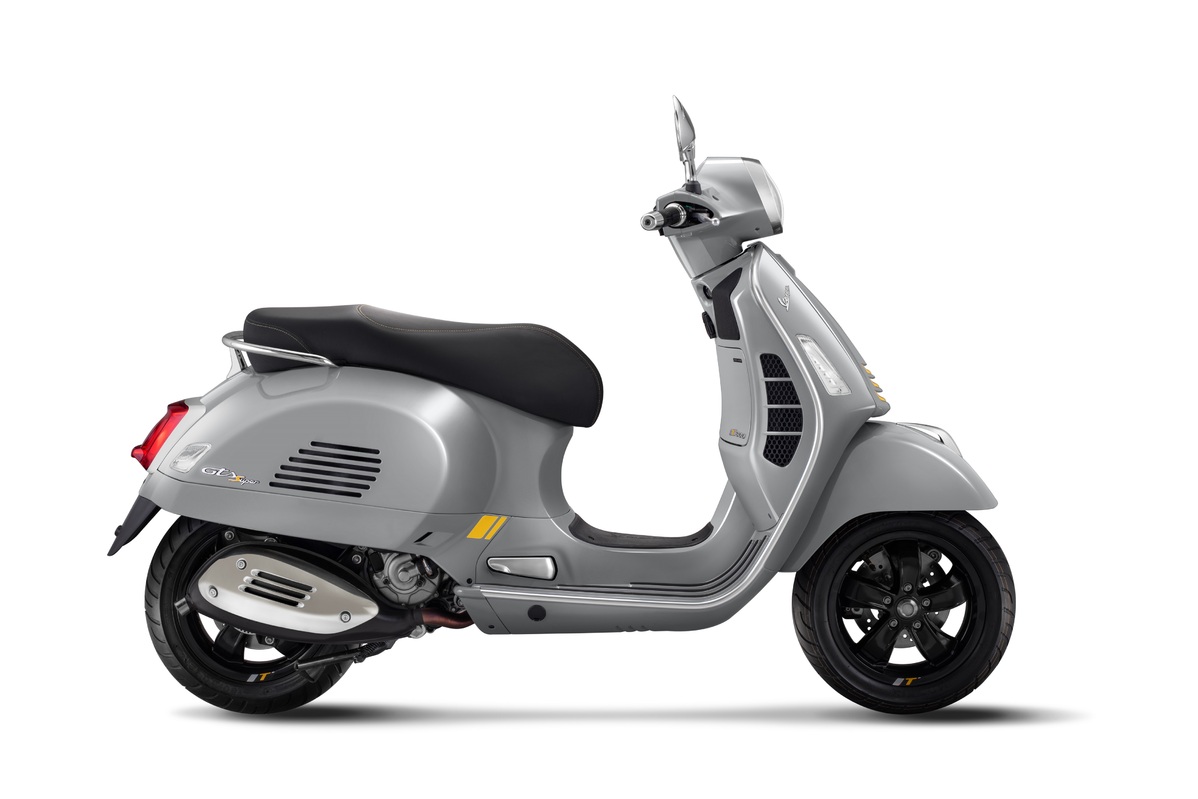 Vespa GTS 300 Super Sport是Vespa所有車系中最體現運動感的車款,比GTS Super更強烈地呈現運動風格,全新的亮黑輪框設計,上方並有專屬的Super Sport圖案,共推出三款車色:雪地白、鈦鐵消光灰、與湛海消光藍,並有專屬的圖騰車貼及具有賽車風格的滾邊條座椅。全新推出的Vespa GTS 300 Super Tech,是Vespa GTS車系最頂級的代表,將動感與科技的呈現最大化。GTS 300 Super Tech是第一個採用4.3吋全彩TFT數位儀表板的Vespa黃牌車款,儀錶板不僅呈現車輛資訊,例如車速、里程數、周邊溫度、油表,並且能顯示Vespa MIA多媒體平台系統與智慧型手機的連結狀態。在設計外觀上,Vespa GTS 300 Super Tech的特色包括消光黑輪框設計,上方一樣有專屬的Super Tech圖案,前輪則有黃色塗裝賽車化圈簧,對比火山黑與風暴灰這兩個車色。座椅則應用了高科技塗層,並有雙層墊襯與黃色點綴的雙色座椅縫邊。