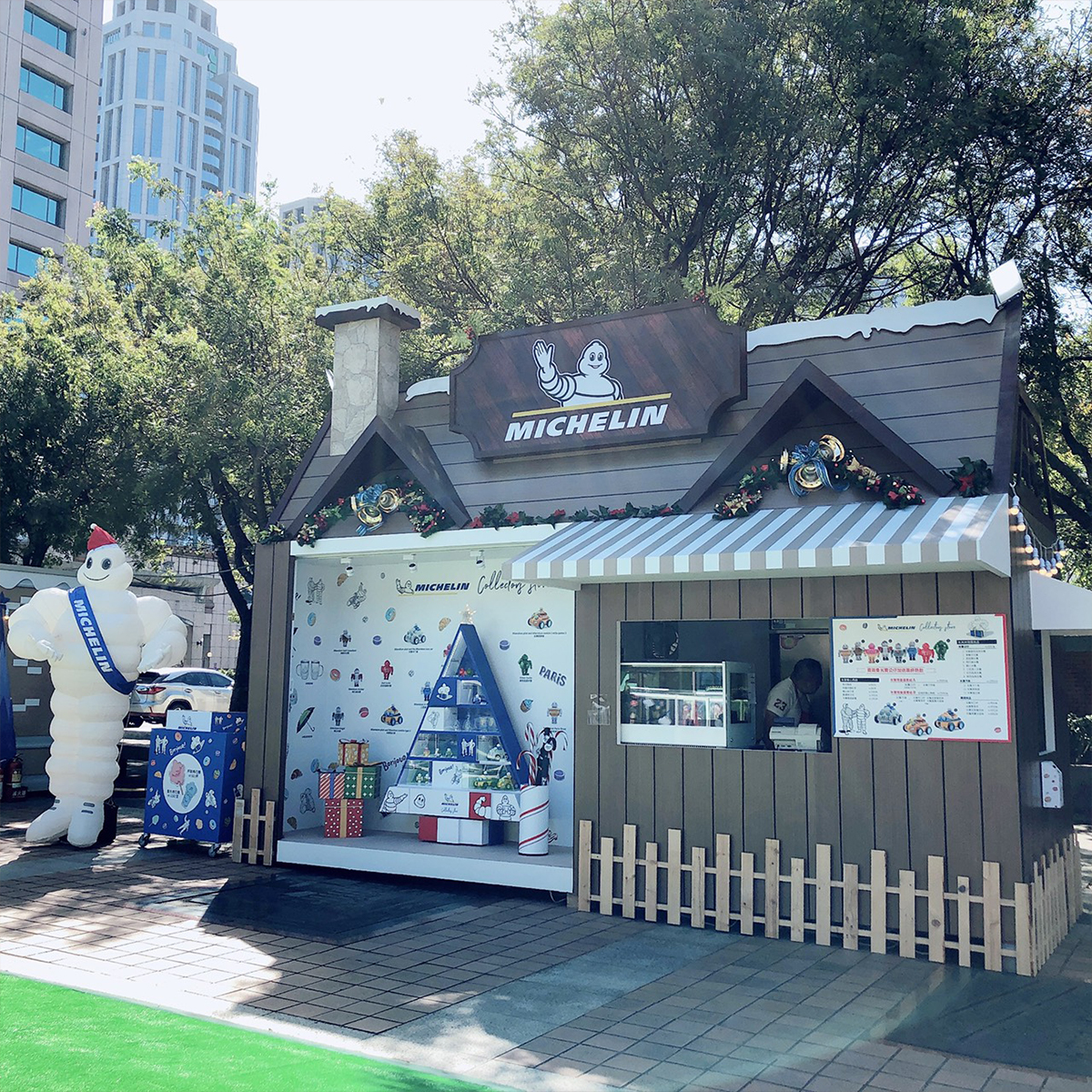 不只是公仔本身相當吸引人, 11/15至1/1日,為期八週,「米其林聖誕貨櫃」,現場也設計了米其林聖誕樹,掛滿大人小孩都愛不釋手的米寶好口杯組、米寶雙饗杯組、及米寶高球傘等米其林專屬精品,象徵著美好的祝福,等著米其林粉絲帶回家;同時,還供應米寶紅豆餅、馬卡龍等法式甜點、飲品,任何消費均可參加抽獎活動註3,可將米寶保溫瓶、旅行組、車用頸枕等實用小物一把抓;每晚19:00開始,首20位消費者消費滿500元,並為米其林FB粉絲團按讚及加入LINE好友,即贈時下最酷炫的超潮螢光棉花糖一支,閃翻全場,讓其他人都對您投以羨慕的目光。