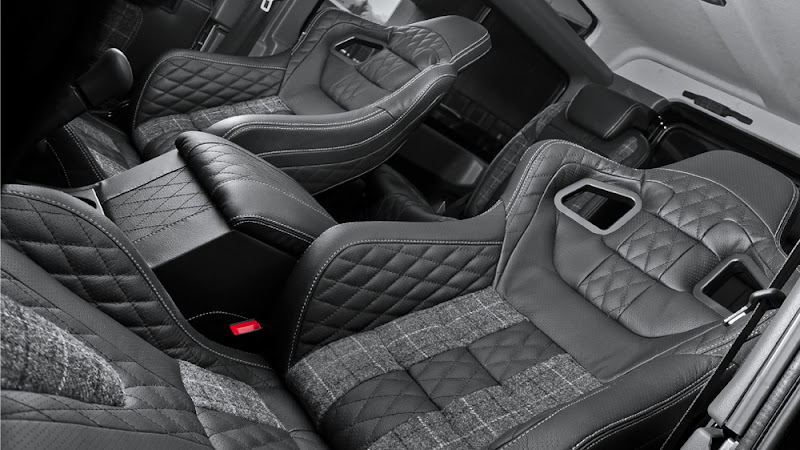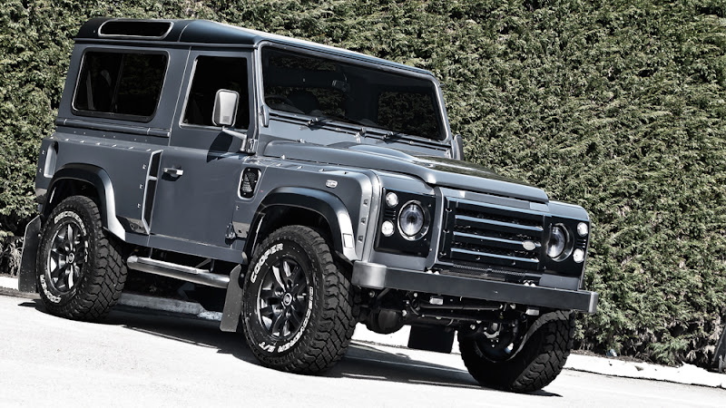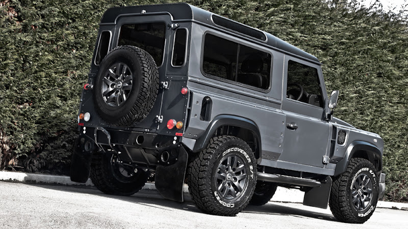 這台由Kahn Design 操刀設計的Defender車身套件被重新修改過,前後輪拱加大並有著鉚釘式的設計,擋泥板,甚至是引擎及側邊進風口,都紮紮實實的傳達出其硬漢本色,軍灰色的圖裝配上黑色車頂及輪拱,更顯得科技時尚的一面,坐上這台車,你絕對是最顯眼的一顆星。