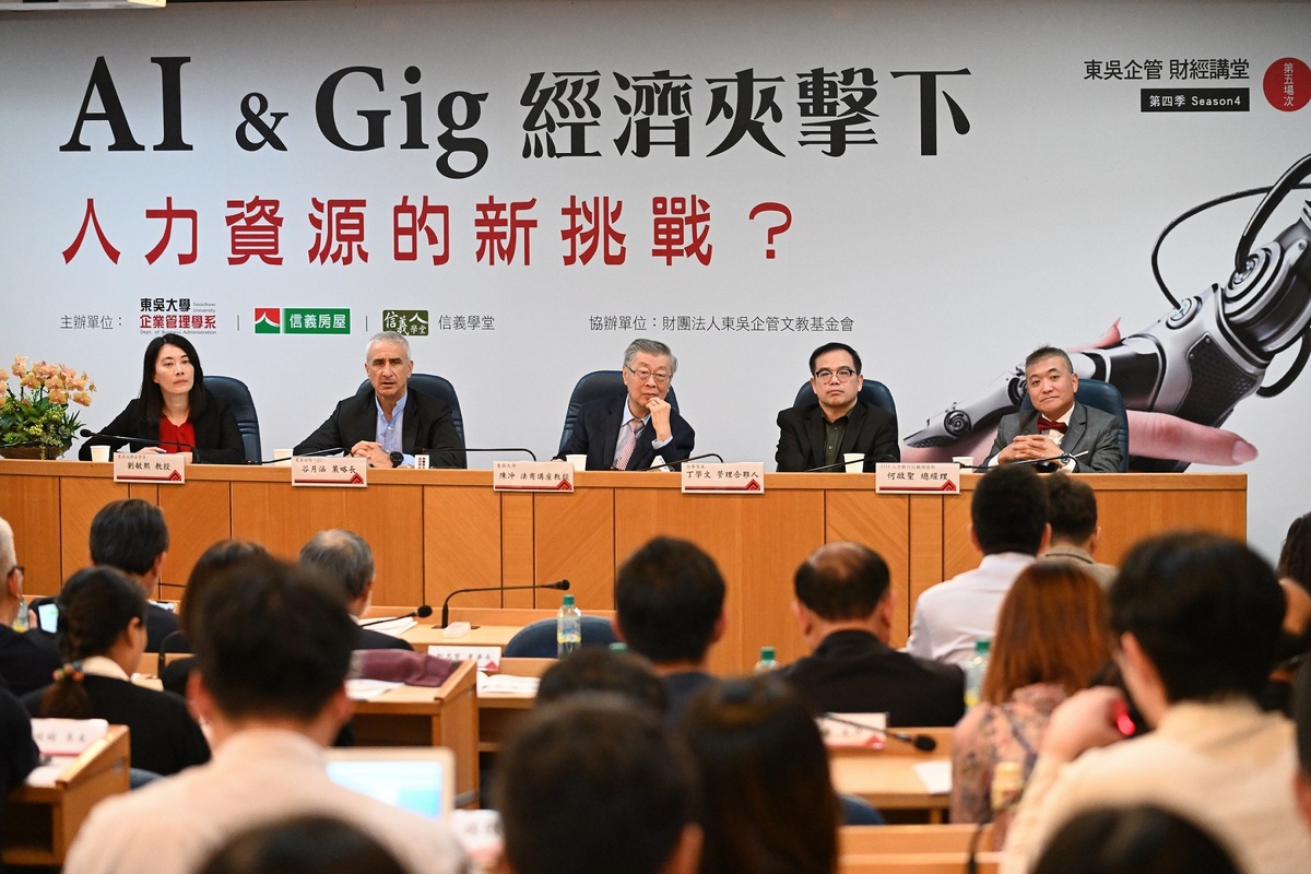 台北金庫資本昨日(18)應邀參與東吳企管財經講堂年終壓軸講座 :「AI & Gig經濟夾擊下人力資源的新挑戰」,這場活動由前行政院長陳冲講座教授擔任主持人,東吳企管系教授劉敏熙擔任引言人,與談人包括寬量國際(QIC)策略長谷月涵、金庫資本管理總經理丁學文、1111人力銀行行銷開發部總經理何啟聖等,各產學領域重量級的專家均在講座上提出多項具有重大意義的建議。