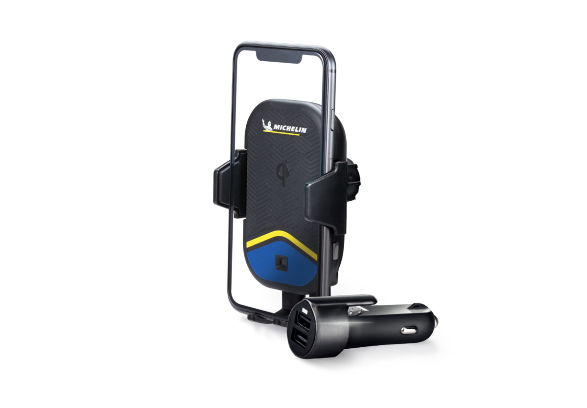 智能充電 自動開合手機架組:開車導航時,最怕手機架不順手、看不清楚路線或是卡手,造成危險,米其林智能充電 自動開合手機架組,擁有超酷炫的紅外感應自動感應開合功能外,置放手機輕輕鬆鬆;更內建QI大功率無線快充功能,觸感式按鈕讓你取機不卡手,搭配多功能車充插頭,隨時隨地都安全。