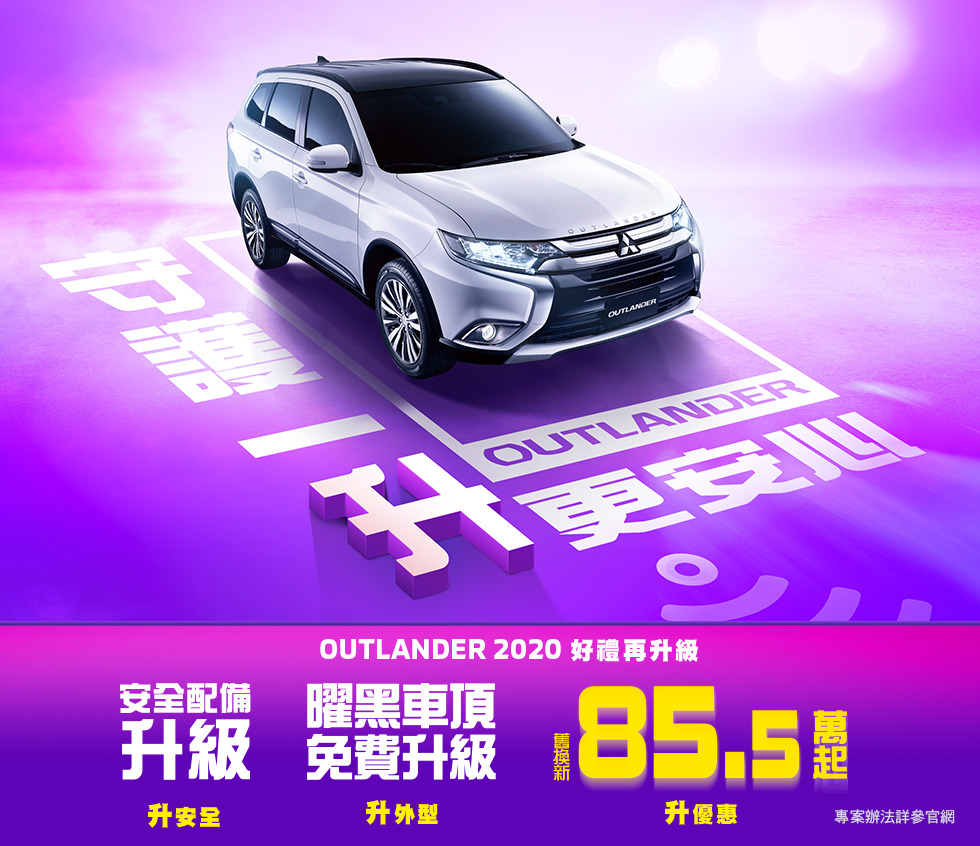 針對消費者關注的SUV持續祭出優惠方案, OUTLANDER「守護一升」超值專案全車系免費升級安全配備!(前駐車雷達、四門LED開門警示系統),再享免費升級TWO-TONE式樣!(曜黑車頂與內裝黑頂篷,限尊貴型/尊貴型七人/旗艦型),並提供高額60萬0利率,舊換新限時優惠價僅需85.5萬起!深受消費者喜愛的ECLIPSE CROSS 20年式全新到港,亦提供2月領牌專屬3大優惠: 1.免費升級日本原廠空力配件組(價值24,000元)、2.享5年或15萬公里保固、3.享90萬高額貸款優惠(限定車型) 。