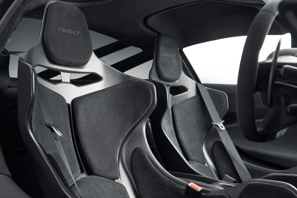 McLaren 765LT將車頭降低5mm、前軸加寬6mm不僅更具戰鬥感,師承McLaren Senna與Formula 1賽車的制動性能,重新設計懸吊系統以減輕簧下重量,大幅提升765LT的車輛平衡與貼地性。專屬極輕量10輻鍛造輪圈,結合減少40%重量的鈦合金排氣系統、傳動系統、碳纖維賽車桶椅等部件,削減整體80kg車重,就連電池也較720S減輕3kg,以賽事經驗達成業界難以企及的馬力重量比。