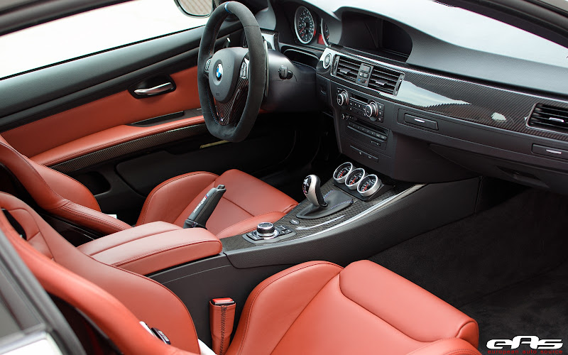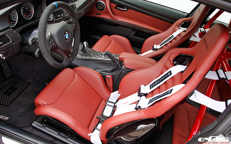 除了搶眼的外觀,內裝方面,EAS可是巧思滿載,除了充滿各式BMW Motorsport的精品外,還裝上BMW Performance反皮方向盤、賽車椅與白色版本Willans賽車安全帶,並且以紅色真皮細緻包覆,連安全帶扣也不放過,與原廠選配的M3專屬紅色內裝相合,宛如鶼鰈般自然情深。在原廠菸灰缸處,更訂座儀表專用架,以供奉負責報告車輛數據的日本Defi三環表。