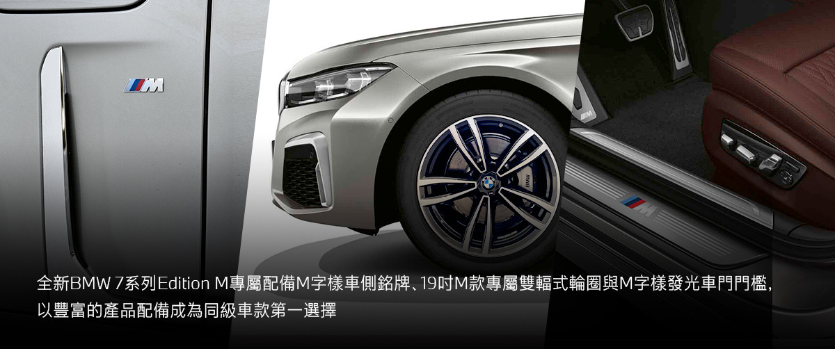 BMW M品牌旗下家族系列向來都是同級中最具動感魅力與性能跑格的指標性車款,憑藉著獨步車壇的外觀設計、挹注強烈熱血氛圍的專屬客製化內裝風格,以及傲視群倫的精湛底盤調校工藝,讓BMW M車系得以在各面向全方位領先,展現更卓越的強悍姿態及動態演繹,表露鮮明而強烈的運動化性格!全新BMW 7系列Edition M涵蓋730i和730d等兩款車型,全台僅限量30部的珍稀席次,勢必吸引熱愛操控的層峰級買家和菁英領袖們高度青睞。