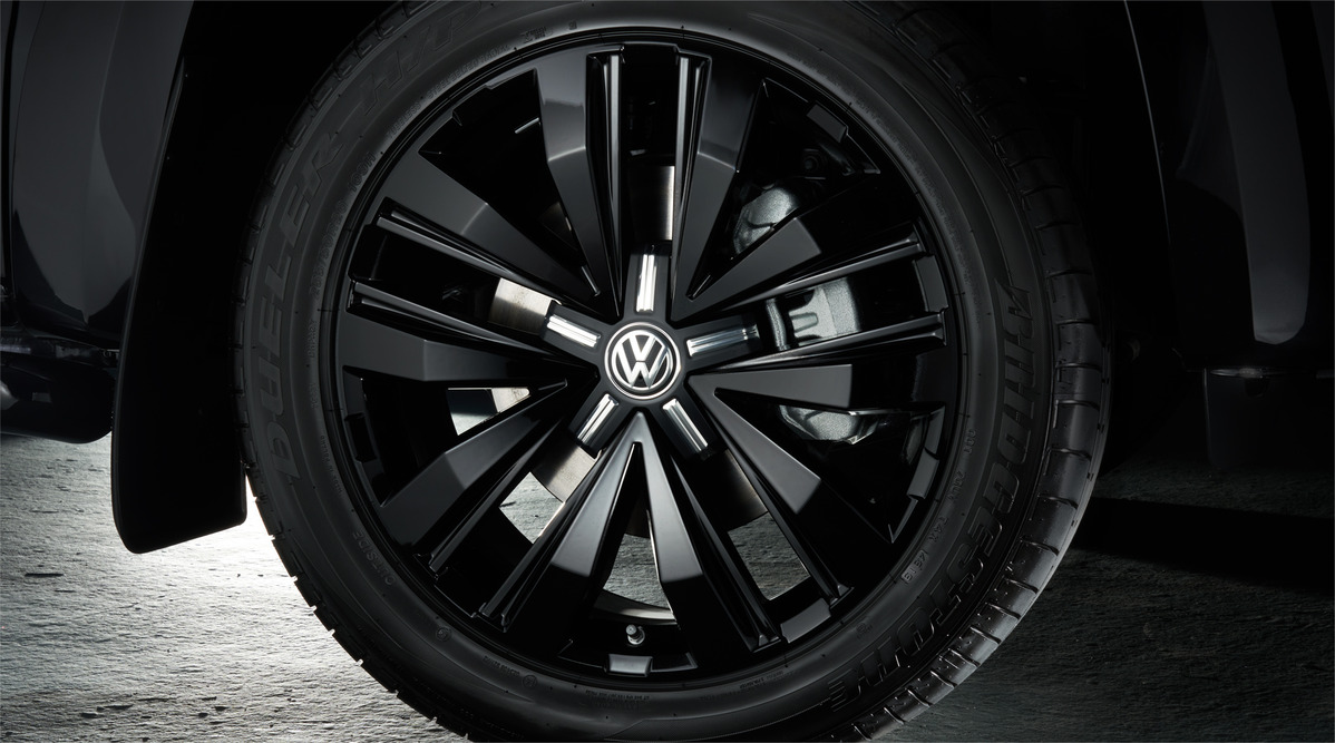 限量引進的Amarok V6 Black Edition保留原有鍍鉻水箱護罩飾條,但在鍍鉻件上方增添闇黑色飾條點綴,配合同樣施以闇黑處理的霧燈外框、車側後飾鏡外殼,再加上車側防護桿、後保險桿等黑色細節元素,以車身及車側勾勒出風格獨具且完美比例的黑色流線,給予這台車更不凡的外觀氣質。同時,搭配黑色車斗防護架、20吋“Talca“ 黑色鋁圈,不僅讓Amarok V6 Black Edition更具個性,專屬的外觀套件,彰顯內斂低調卻更顯氣勢非凡。