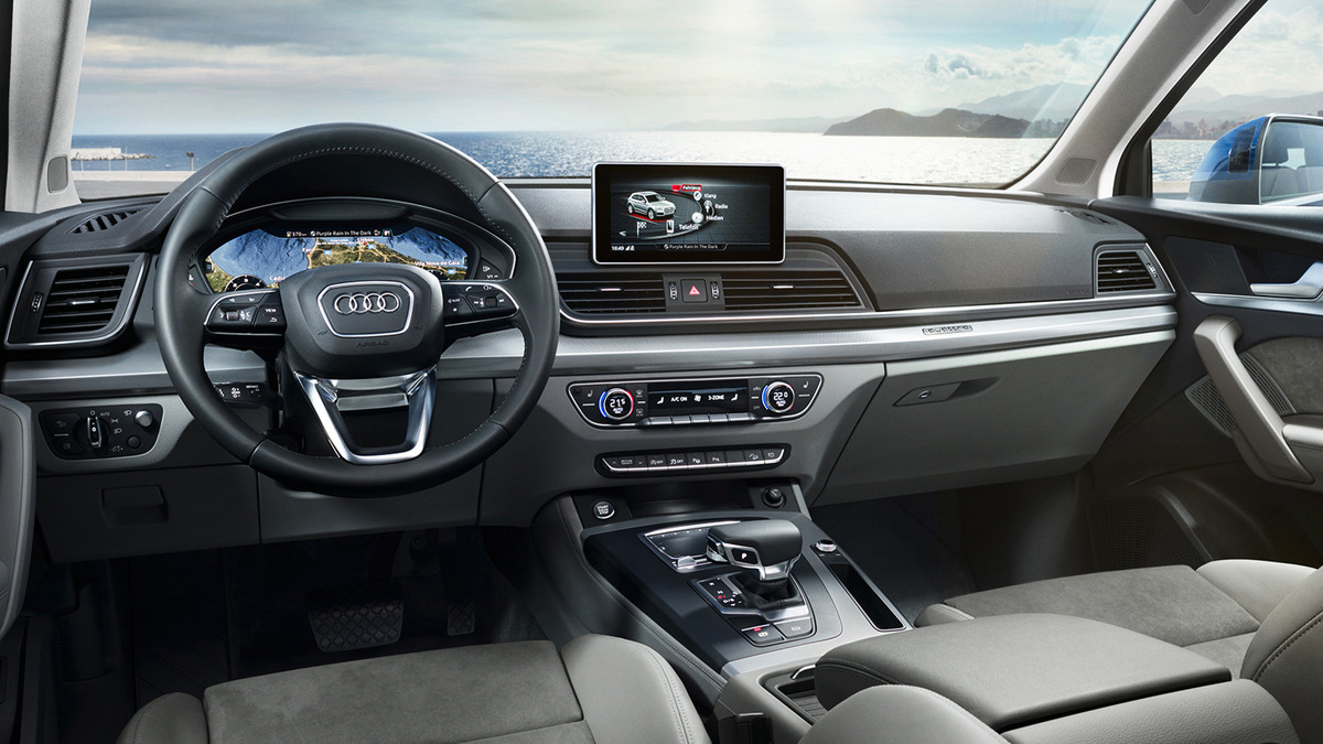 Audi Q5承襲Q系列經典血統,融合時尚、運動化的設計美學,無論動靜皆是眾人目光焦點,結合四環直覺化科技Audi Virtual Cockpit全數位虛擬座艙、靈活空間機能與頂級車艙配備,打造智慧的車室環境;透過卓越的底盤調校、先進的Audi quattro ultra智慧型四輪傳動系統與Audi drive select可程式車身動態系統等科技加以結合,使得Audi Q5能適應各式地形路況,且保有駕馭樂趣與行車舒適性。另Audi Q5 全車系皆標配齊全的智慧安全科技,兩大公路行車與都會行車輔助套件,包含ACC 主動式定速巡航控制系統、主動式車道維持及偏離警示系統、後方橫向車流警示及離車安全警示等多項功能,提供駕駛與乘車成員最安心的防護。