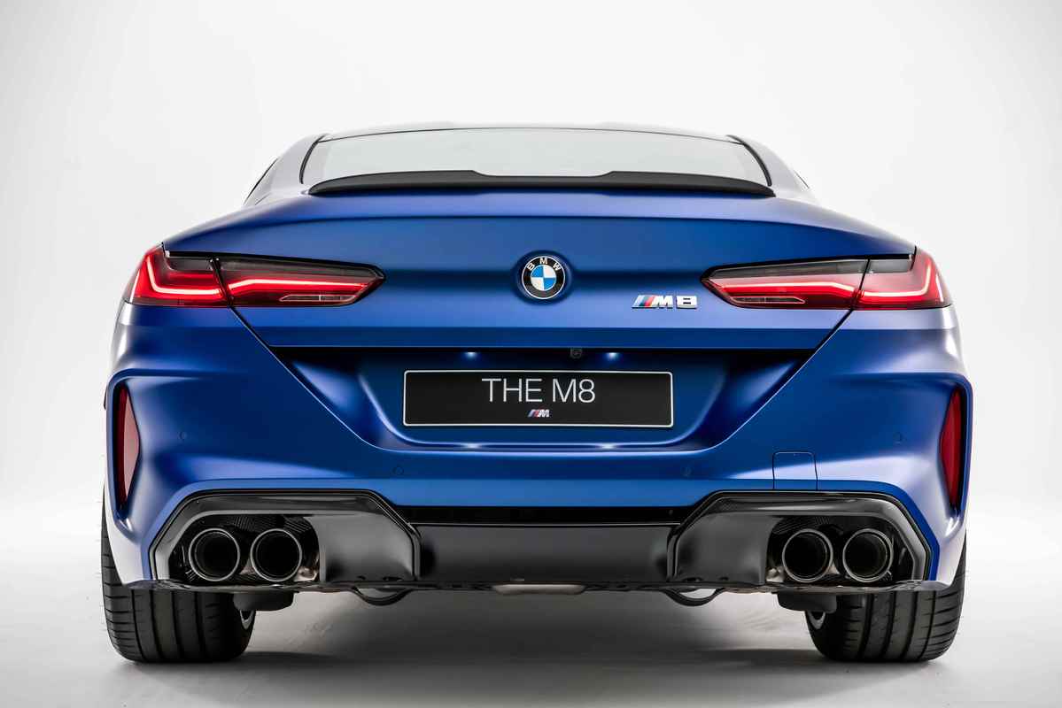 百年來堅持以頂尖工藝品味與創新科技打造車款的BMW以優雅流暢的跑車線條勾勒出BMW M8令人震懾的磅礡氣勢,無論是俐落的雙門Coupe設計或大器非凡的四門Gran Coupe車款,BMW將全新BMW M8佇立於頂級奢華舞台的聚光燈下。鑲有M8銘牌的黑色高光澤雙肋造型水箱護罩與鍍鉻外框,搭配侵略性十足的湛藍色智慧雷射頭燈(含Glar-free光型變化功能)頭燈,讓BMW M8一出場就奪取眾人眼光;銳利的引擎蓋與車側鈑件肌理線條,一路延伸至後擾流尾翼,營造結合力與美的速度律動;前下擾流與前進氣壩搭配車側如迴力鏢造型的導流氣孔,除滿足賽道規格散熱系統的嚴苛進氣需求,更注入蓄勢待發的競速氣勢;完勝風阻的M空力套件與全新BMW M8專屬的20吋M星幅式811M型輪圈,展現出不容錯認的經典M系列血統;兼具輕量化與堅固強韌的M碳纖維車頂,為這台頂級跑車在肆意馳騁、破風而行時如虎添翼。