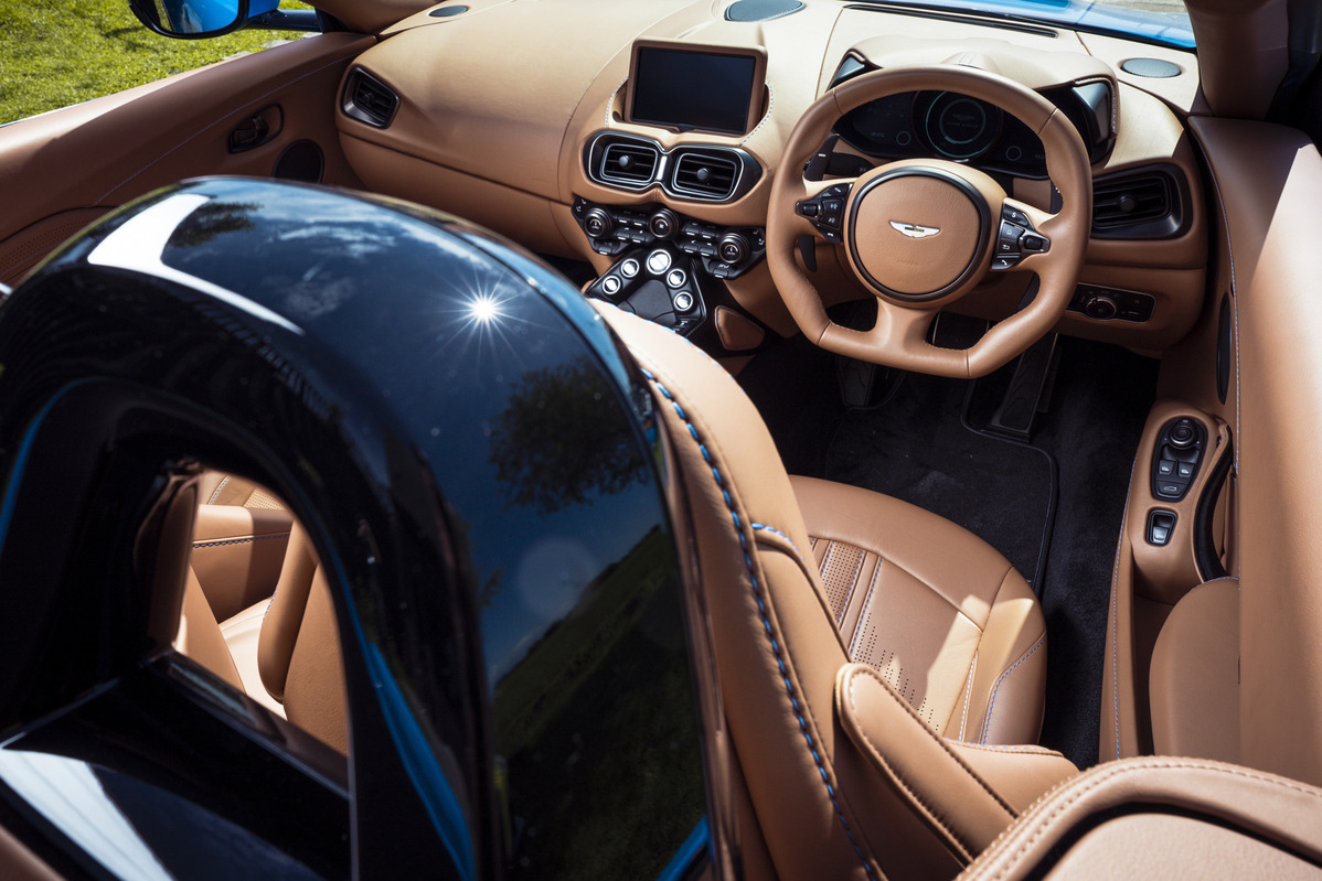 不同於品牌旗下DB11與DBS敞篷版本,ASTON MARTIN為Vantage Roadster打造專屬Z型軟頂折疊車篷,高達8層之結構設計,採用當代先進隔音與防風雨技術,在時速50KM/H的狀態下,開篷所需時間為6.7秒、關篷亦僅需6.8秒,為目前市售敞篷車中最快開關篷的車款。鋁合金打造之ROPS (Roll-Over Protection System) 系統,源自於先進航太技術,有效打造輕量化堅固車身、優化內部空間布局,與細緻動力調校相互搭配,確保Vantage Roadster擁有與一般版本匹敵之優秀動態性能,並使敞篷版本與硬頂雙門版本相比,車身重量僅小幅增加60KG,完整保留New Vantage 所訴求的輕巧靈動;此外,除了頂篷的快速收放,Vantage Roadster的收納空間表現亦傲視於同級產品,擁有200升後廂空間,可放置一組高爾夫球具或行李箱,緊扣ASTON MARTIN重視生活美學的品牌精神。