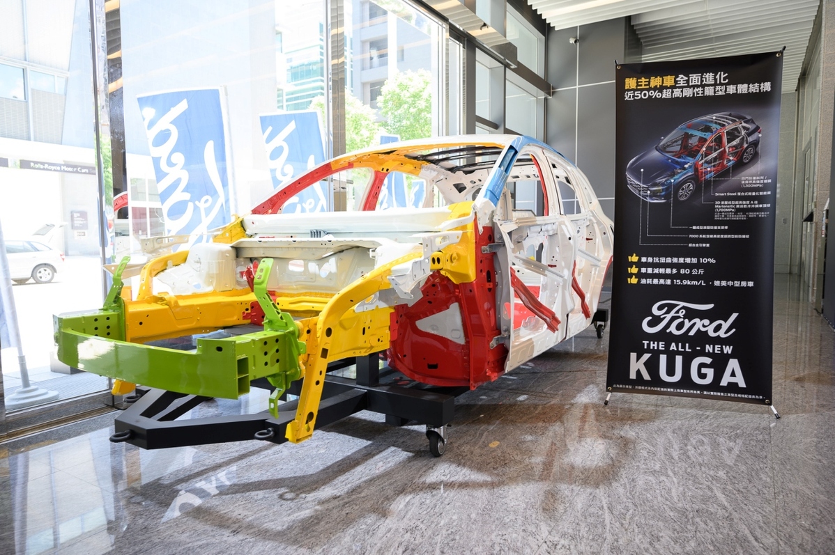 The All-New Ford Kuga車身結構以近 50% 超高剛性鋼材布局打造,使車身抗扭曲強度提升10%,並採用全新3D 滾壓成型工法打造Martensitic麻田散冷淬鋼車頂樑,高達1,700MPa超高硬度貫穿車身A柱至C柱,結構面積減少50%,兼具輕量化之特性,也帶來更優異的安全性。