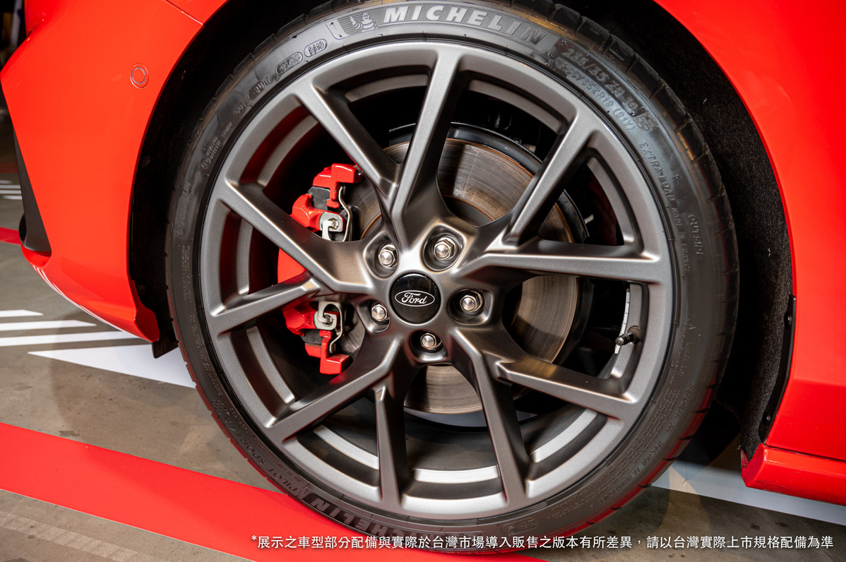 在流線身形上,New Ford Focus ST Wagon配備競技型 Performance Pack套件凸顯性能本色,包含:結合專屬ST銘牌標誌的車頭蜂巢狀水箱護罩、ST專屬運動化大型擾流尾翼、雙邊單出尾管、ST專屬迎賓踏板與車尾ST專屬銘版,展現動感ST本色;標配Michelin 19吋 Pilot Sport 4 S進階高性能跑胎、輕量化鋁圈及大型紅色卡鉗(前雙後單活塞組),完美兼容性能與風格,展現極具張力的視覺饗宴。