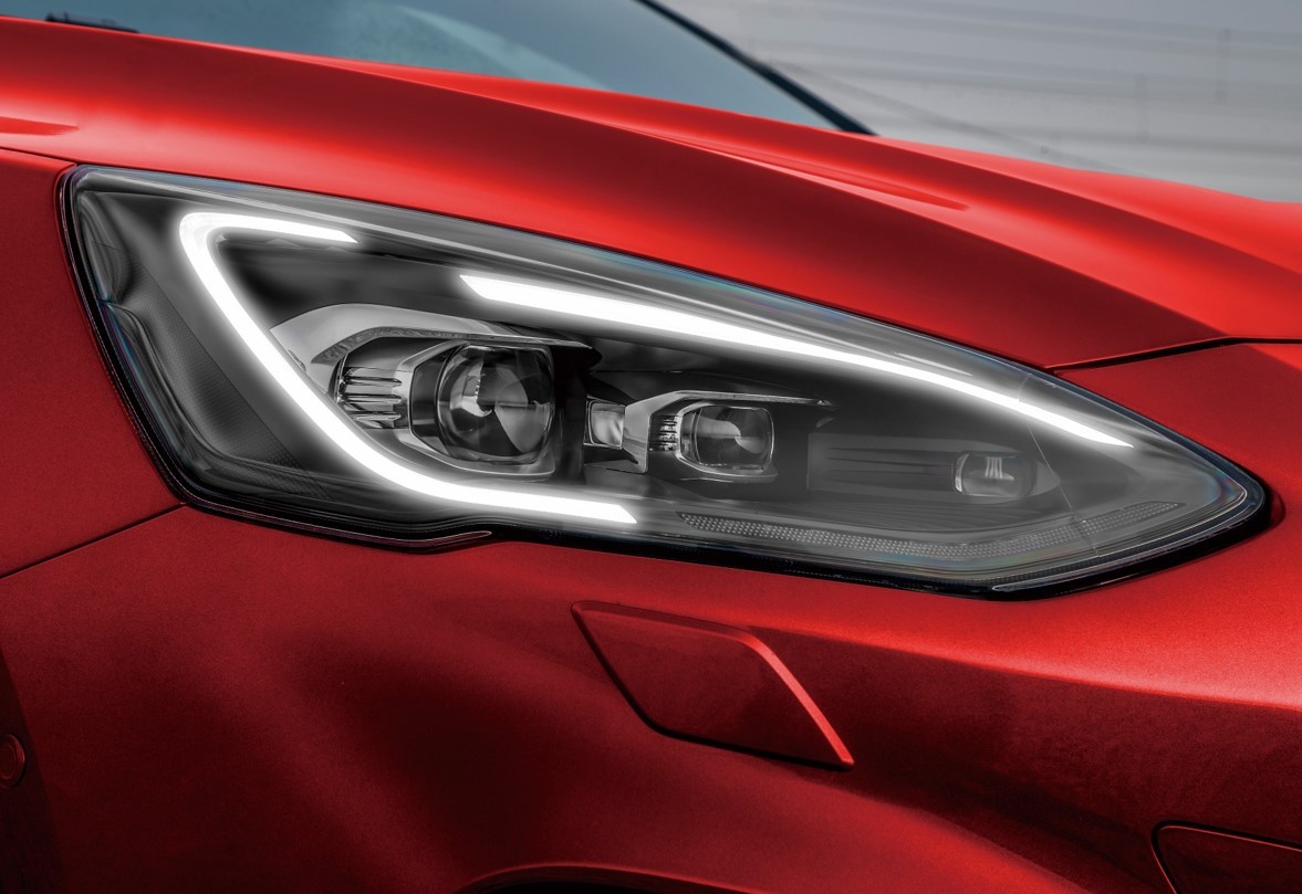 New Ford Focus ST Wagon具備優美修長的車身設計,相對於五門掀背版本之New Ford Focus ST車長再增加約280mm,來到4,667mm之譜,簡潔的線條映射光影變化,動靜皆誘人矚目,其採用的專屬「旭日之刃型LED日行燈」,整合AFS頭燈主動式轉向照明輔助系統,帶來更為醒目的辨識度與出色照明效果。