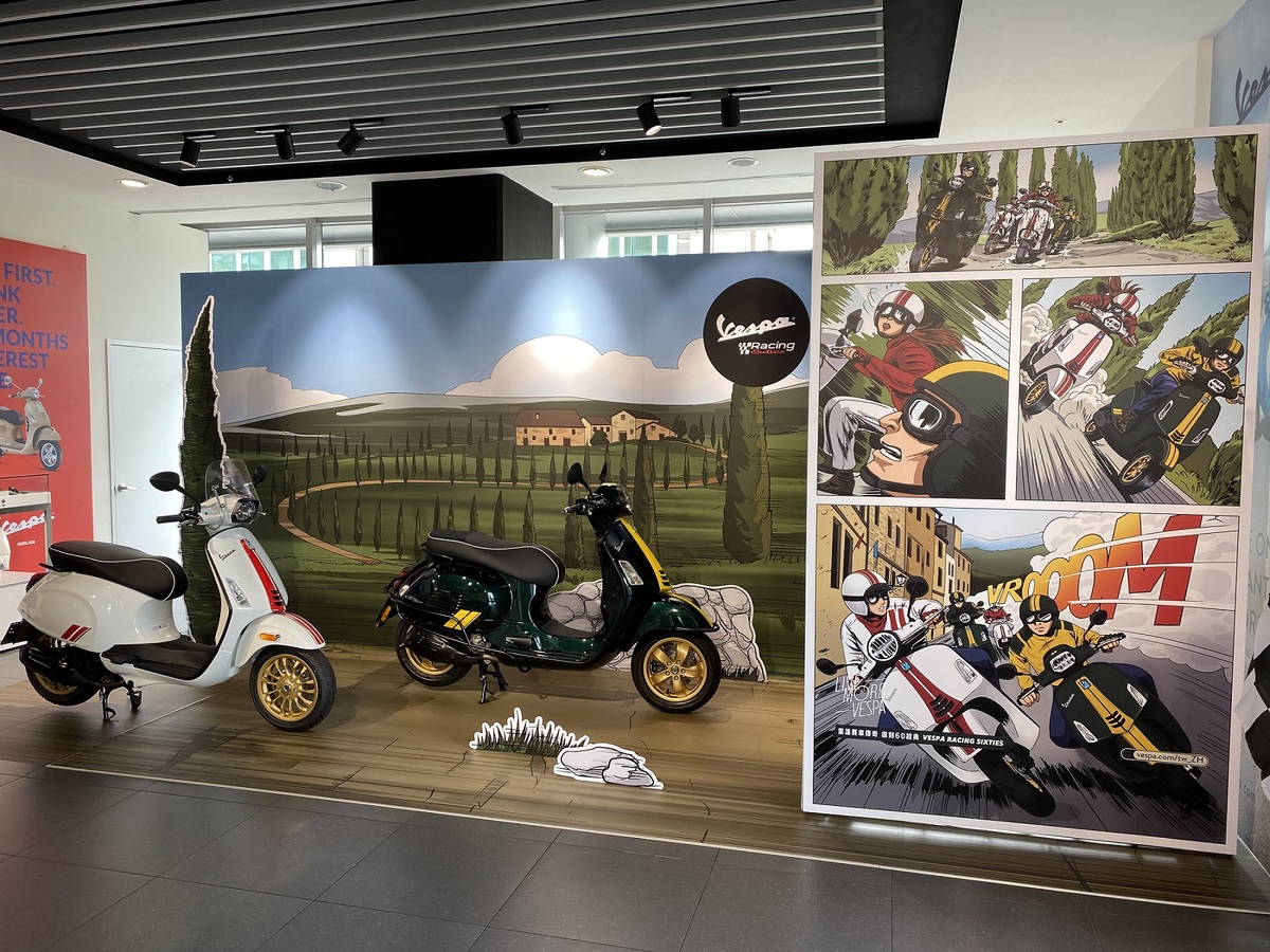 受到1960年代賽車與摩托競速興盛的啟發,Vespa今年以深具運動和競賽血統的Sprint 150及GTS 300推出Vespa Racing Sixties特仕版,在經典的外觀造型上,使用復古賽車配色並搭配俐落條紋,完美體現賽車獨特的跑格精神,是緬懷經典賽事車迷,或想要重溫黃金年代的朋友們不能錯過的選擇;Sprint 150 Racing Sixties特仕版已於6月由總代理太古運通開放預購,而黃牌的GTS 300 Racing Sixties特仕版則在媒體鑑賞會活動中搶先亮相,預計第四季正式在台上市。
