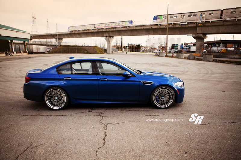 M5的車型與BBS樹枝狀輪圈就相當匹配,但BBS好像快要變成高級車的標準配備了,這時不妨就來顆PUR輪圈吧!有著與BBS類似的風格,但是框邊鉚釘設計又更符合M5的跑格,而為了更顯協調感,在車上安裝了H&R車身降低套件,讓M5更顯霸氣。