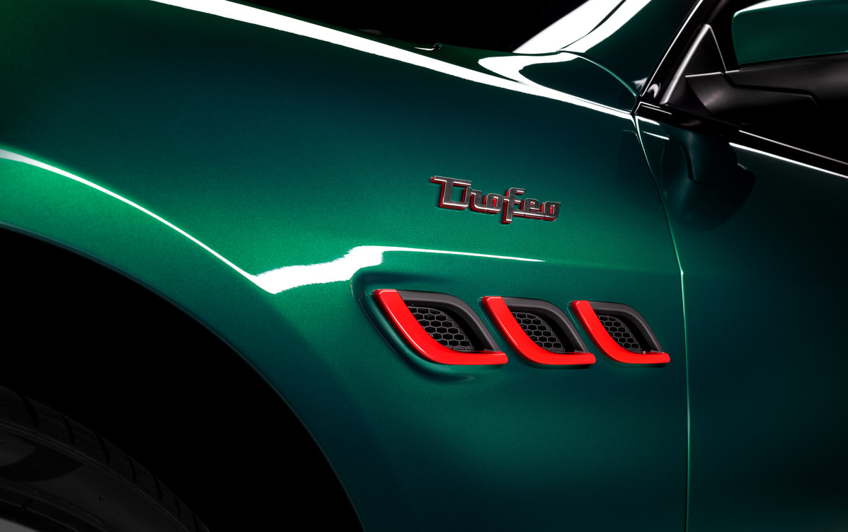 身為Maserati 高性能指標,Trofeo全車系不僅擁有狂放激昂的經典引擎聲浪,出眾外觀更是一眼即可辨別:透過湛黑雙格水箱欄柵、引擎蓋雙散熱孔、Trofeo專屬銘牌、碳纖維空力套件,及妝點於散熱鰭孔和C柱Saetta廠徽的紅色徽飾,強烈跑格不言可喻。更令人注目的,還有啟發自3200GT和Alfieri概念車,以迴旋鏢形狀設計而成的新世代LED尾燈。