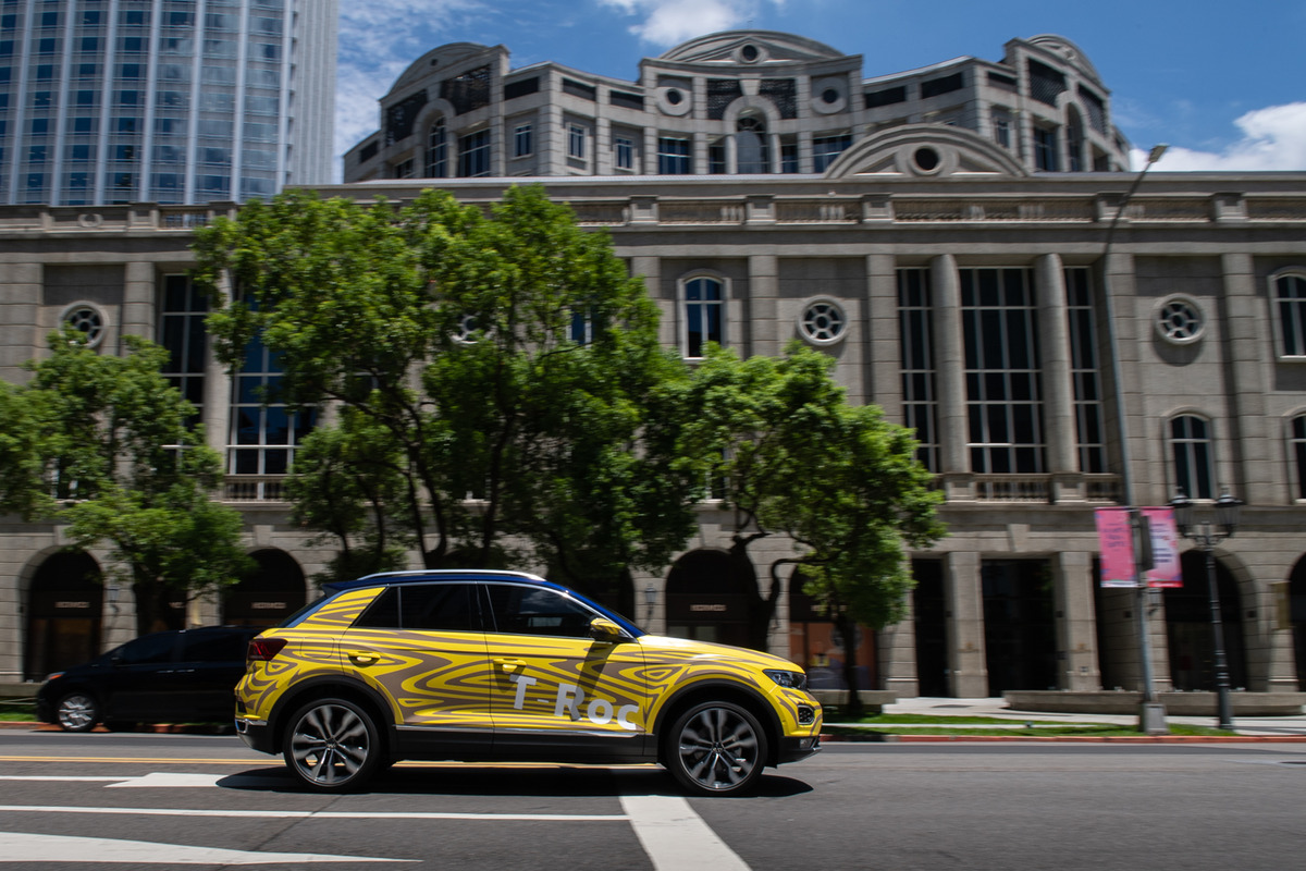 即使測試車以繁複的花紋偽裝,依然藏不住The T-Roc極具辨識度的外型,如跑車的車身線條展現有別於其他Volkswagen 休旅的設計,加上白日黑夜都不容錯認的六角型造型LED日行燈,此外The T-Roc也將是台灣福斯汽車首款搭載全新品牌識別的車款,彰顯The T-Roc獨一無二的品牌魅力。