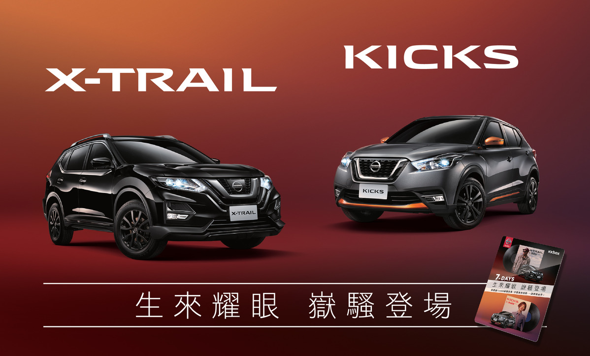 裕隆日產自即日起至10月31日止限量推出NISSAN 「嶽騷特仕車」,將於 9月12日起於全國NISSAN 營業據點展示販售,並於9月12、13兩日在全國九間據點舉辦店頭發表會,安排Live House現場演奏表演,誠摯邀請消費者親臨現場,體驗X-TRAIL嶽動版特仕車和KICKS騷動版特仕車打造的音樂魅力。活動期間試乘NISSAN X-TRAIL 與 KICKS,再贈送KKBOX 高音質體驗會員試乘禮,詳細活動資訊請至NISSAN官網http://www.nissan.com.tw查詢。