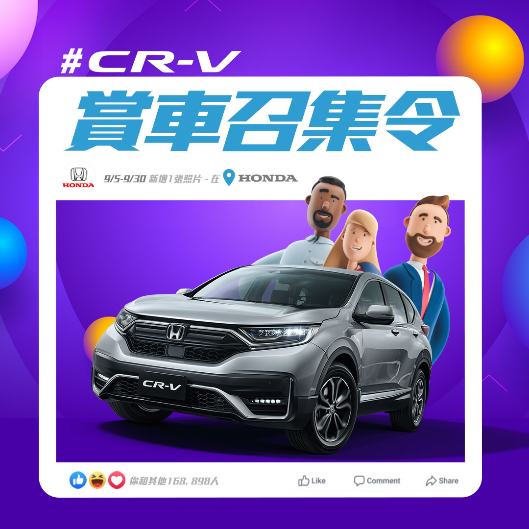 「萬人按讚挑戰」活動解鎖成功9月入主CR-V即送5年延長保固;「CR-V賞車召集令」啟動可抽時尚潮流輕檔車Honda Monkey 等50項好禮同步啟動