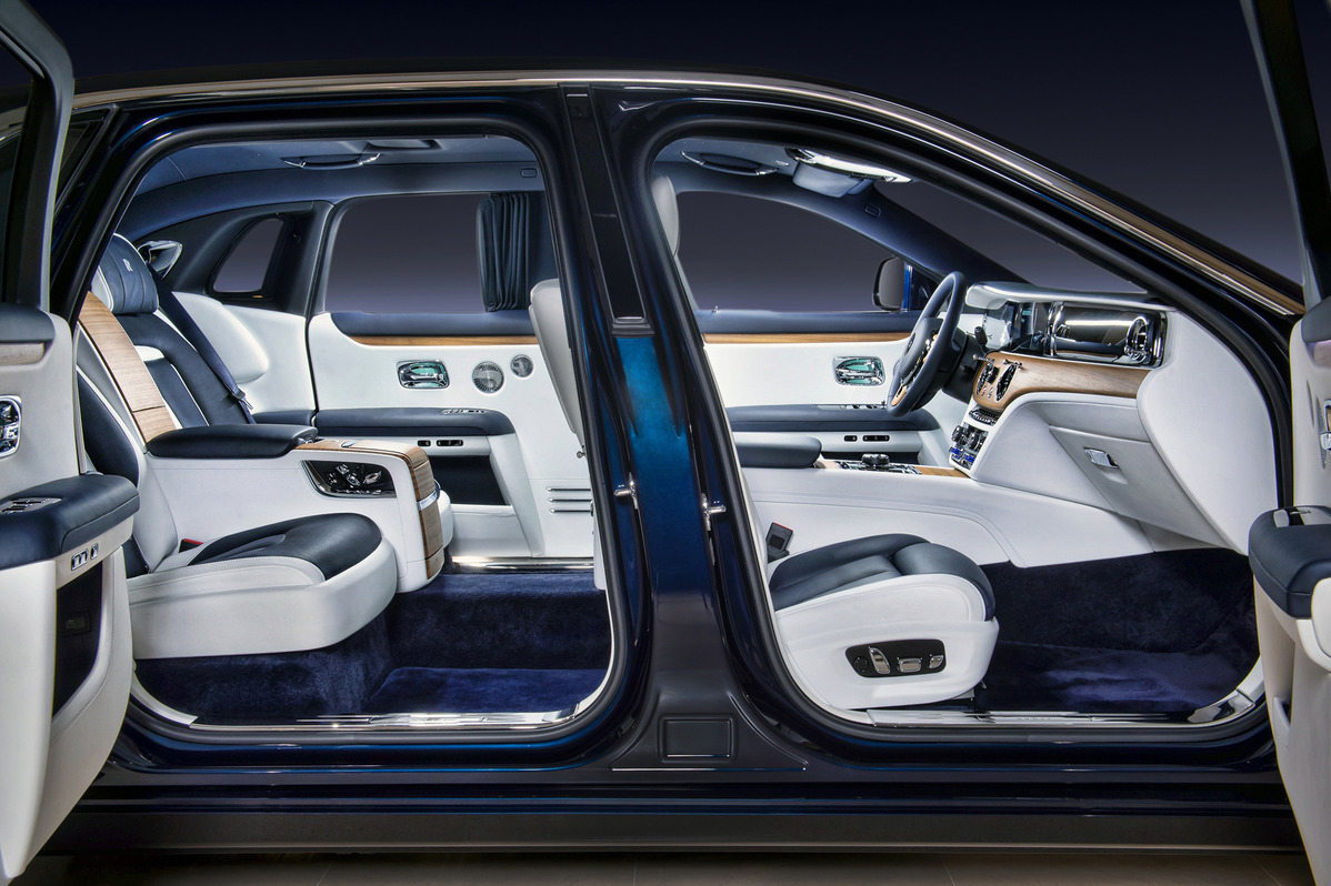 勞斯萊斯表示希望盡可能保留Ghost標軸版本優雅的身形比例和線條,所以英國古德伍德設計師只將車子後門和車門鈑件加以擴展延長,而和多數的勞斯萊斯車款一樣,真正的魅力在於它的座艙。由於軸距加長,因此長軸版本的全新Ghost在後座空間及氛圍都有不一樣的感受。而在選用後座獨立座椅後,兩座椅之間配置了可用來冰鎮香檳的冰箱,而為了使存放於此的飲品保持最佳風味,勞斯萊斯還向英國侍酒大師公會(Court of Master Sommeliers,CMS)徵詢專業意見,針對不同酒類,讓冰箱提供最佳溫度。