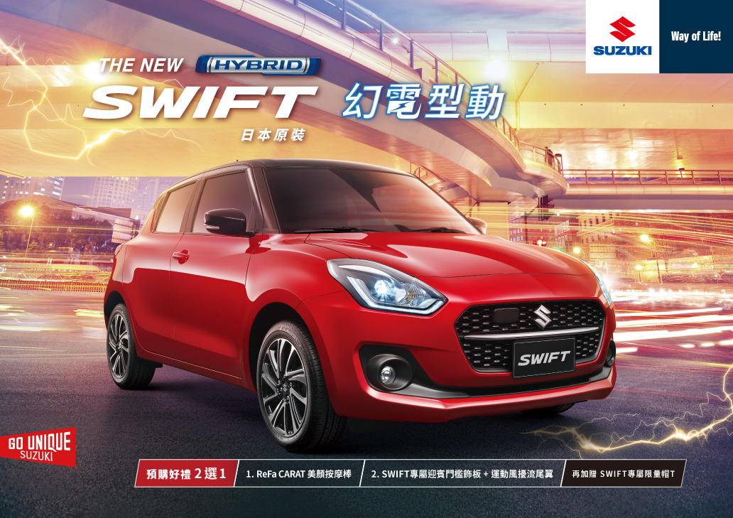 此次,THE NEW SWIFT搭載MILD HYBRID輕油電科技,以及SUZUKI Safety Support的安全升級,將以全面革新之姿強勢回歸台灣車壇,以SUZUKI「GO UNIQUE」的品牌精神,持續為台灣消費者帶來不凡的魅力生活。