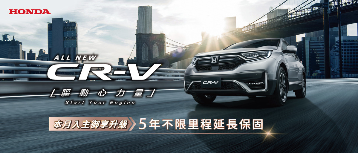 Honda Taiwan為回饋顧客之支持愛護,凡於本月入主ALL NEW CR-V,即贈送價值高達2.5萬元之「5年不限里程延長保固」好禮,貼心提醒消費者預購從速、把握最佳購車時機。