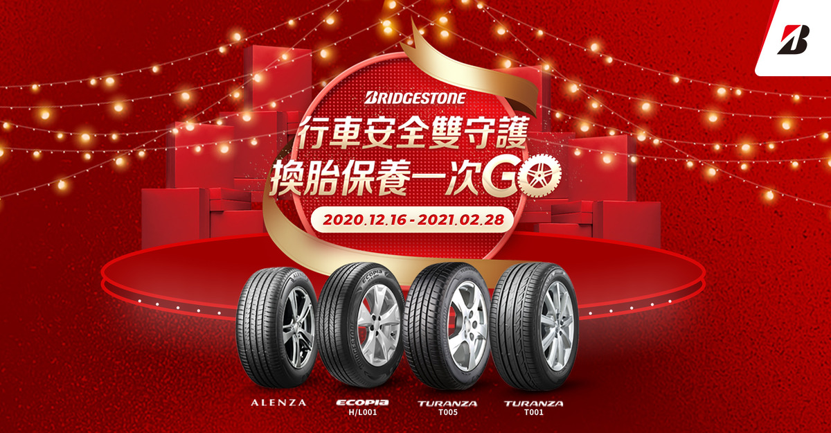 第一重:自2020年12月16日至2021年2月28日止,凡於全台普利司通輪胎館購買4條普利司通轎車/休旅車指定花紋輪胎,立即免費換指定之機油2瓶!(因各車款所需機油數量不同,不足數量需請自行加購,贈品不得折現或帶走)。