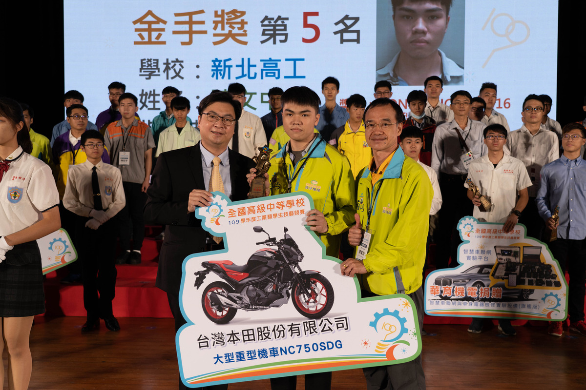 Honda Taiwan在12月份更以實際行動贊助「109學年度全國工業類科學生技藝競賽」的盛大賽事,捐贈16年式NC750SDG重機一台、INSIGHT Hybrid CVT實習引擎一具及Honda萬用線路診斷工具一組。 本回捐贈典禮由Honda Taiwan服務部 張英忠部長為贈與代表、由教育部 廖興國主任秘書代表受贈。