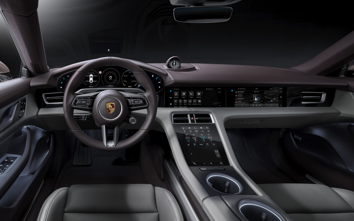當2019年Porsche Taycan首度於法蘭克福車展登場時,駕駛艙俐落的結構和全新的建築結構設計,引領了新一代的設計理念。以駕駛者為中心來思考及設計,曲面獨立儀錶板位居於前方中控台制高點,確保所有資訊一目瞭然;10.9 吋資訊娛樂顯示幕以及提供選配的副駕駛座乘客前方螢幕,皆令人耳目一新。