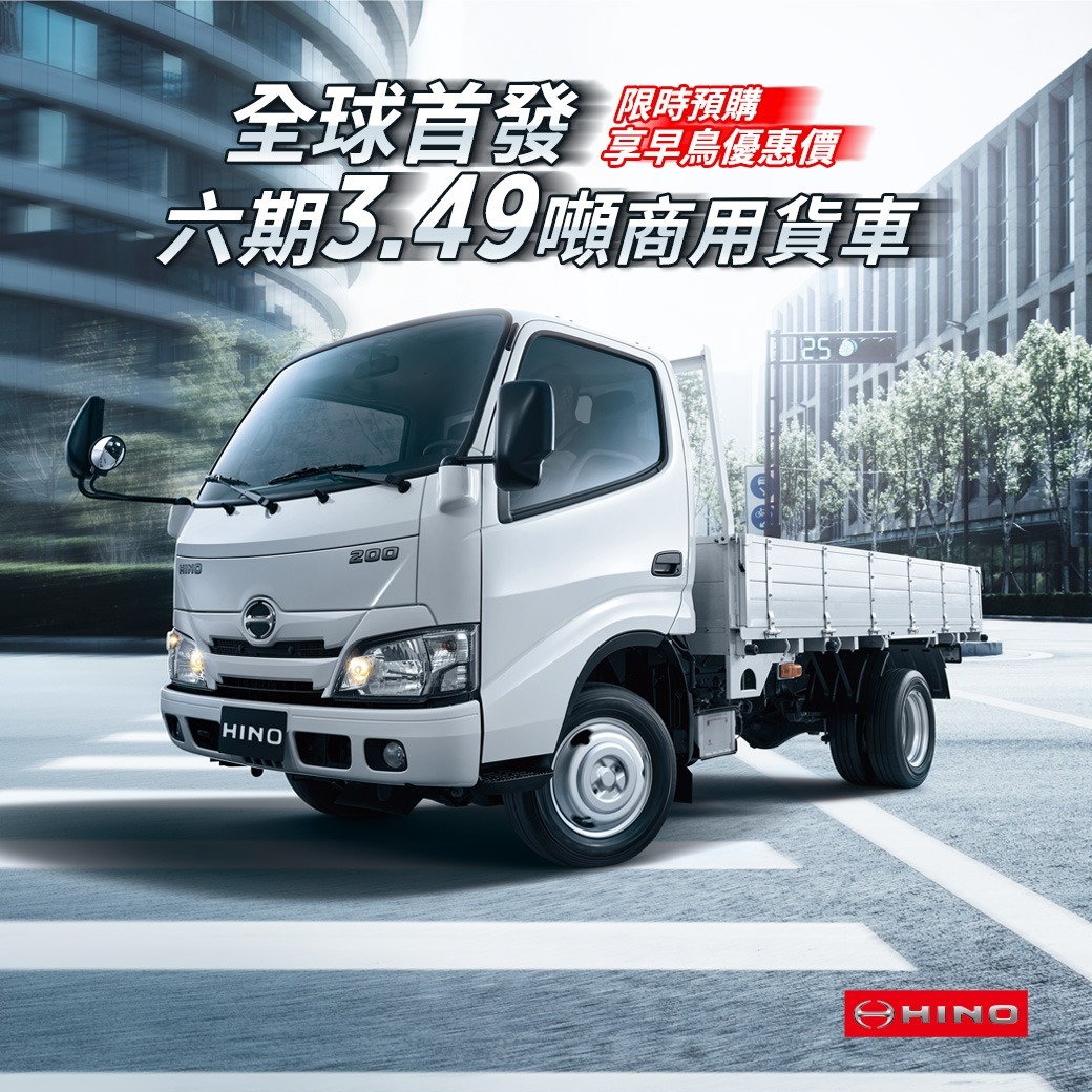 配合政府在小型貨車載重法規的修正,市場原3.49噸車型均已提升為五噸車型,使得2020年下半年台灣市場頓時沒有3.49噸車型可以購買。針對輕積載、需要大置物空間的業者,僅能選擇更小c.c.數車型。為了給顧客多一種選擇,今年初,和泰汽車搶先全球引進符合政府環保與車輛安全法規的全新六期日野200系3.49噸商用貨車,車輛預計在三月初正式對外發表,為了感謝顧客耐心的等候,特別推出早鳥預購優惠,即日起至全台HINO營業所商談並下訂預購的顧客,即享有早鳥優惠車價,購得全球首發日野200系列3.49噸的貨車。