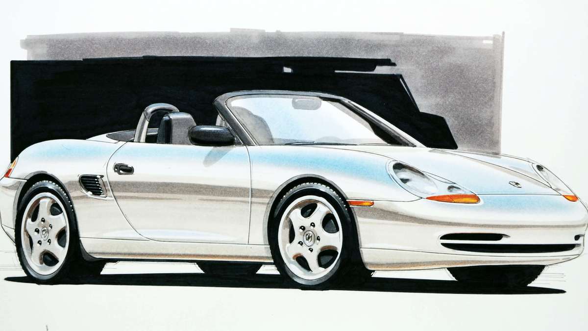 儘管過程充滿壓力、困難重重,Grant Larson所設計的「Boxster」跑車成功延續保時捷早期Spyder、Speedster和Roadster跑車的技術成就,甚至刻意融入1950年代550 Spyder和718 RS 60的設計元素,令世人驚艷。無論第一代上市車款或概念車,也都能看見中置引擎概念、更短的車尾後懸、自前軸往前延伸的車頭設計以及中置排氣尾管等特色;搶眼的進氣和排氣口,採用創新照明科技的頭燈、尾燈和方向燈也都是Boxster重要的設計元素。即便車室內的各項細節也完美匹配外型設計,從車門飾板、儀表板和中控台金屬部位都採用車身同色烤漆。