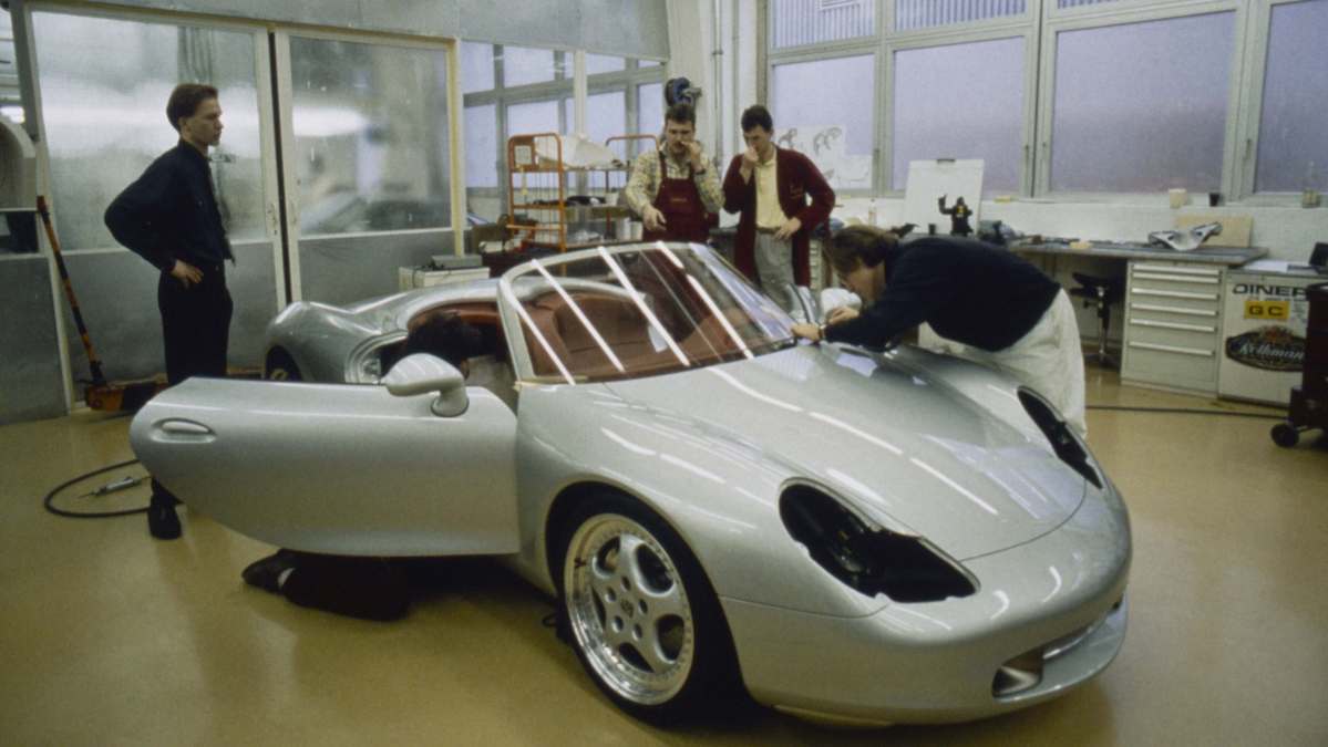 目前擔任保時捷特別專案總監的 Grant Larson,當時便負責這款概念車的設計。憶及過往,他表示:「1991年10月,我負責設計部門的前導研發,Audi 當時於東京車展發表了 Avus Quattro 概念車,我們也於1991年末積極展開Boxster和996車系的研發,並決定打造一部展示用的概念車。當時,我有絕對的自由和空間進行設計,我還記得所有草稿都是2D手繪稿。我的老闆 Harm Lagaaij 給了很多壓力,不斷要我加緊完成車身造型和細節設計;幸好當時能找來一位技術超凡的建模師Peter Müller,他捨棄慣用的方式,僅僅參考2D手繪稿便開始徒手建模。原本的計畫,是在1993年春季的日內瓦車展發表這部概念車,但為了不再浪費任何寶貴的時間,我們最終決定讓Boxster概念車提早於1月份的底特律車展面世。不僅如此,我們更大膽挑戰以美國為這部雙座小跑車的主力目標市場,當時,保時捷在美國市場的銷售表現差強人意,而 Mazda Miata、BMW Z1已經在雙座小跑車市場建立其地位了。」