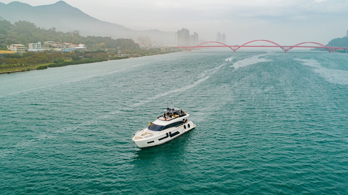 燦爛金黃的陽光透過薄雲斜灑在波光粼粼的淡水河上,今天的關渡碼頭多了一位來自義大利的嬌客駐足:Ferretti 670。農曆新年甫結束,奧莫爾遊艇在關渡碼頭繼續延續新年的喜氣,將全新義大利Ferretti 670豪華遊艇交付予船主。「在這一年多來全球疫情的延燒下,這艘遊艇賦予Work From Home全新定義,」奧莫爾總監鄭澤宇先生說道,「她的主臥艙總面積達到18平方公尺,艙內甚至擁有一間高隱密性的私人書房;船主很滿意能同時與家人在船上共享珍貴私人時光,又能在私人書房處理公事。他時常驕傲的跟友人分享自己Work From “Boat” 的心得!我們很榮幸能將Ferretti 670帶進台灣成為國內遊艇圈的新成員,也期許國內日漸茁壯的海洋生活文化能持續蓬勃發展。」