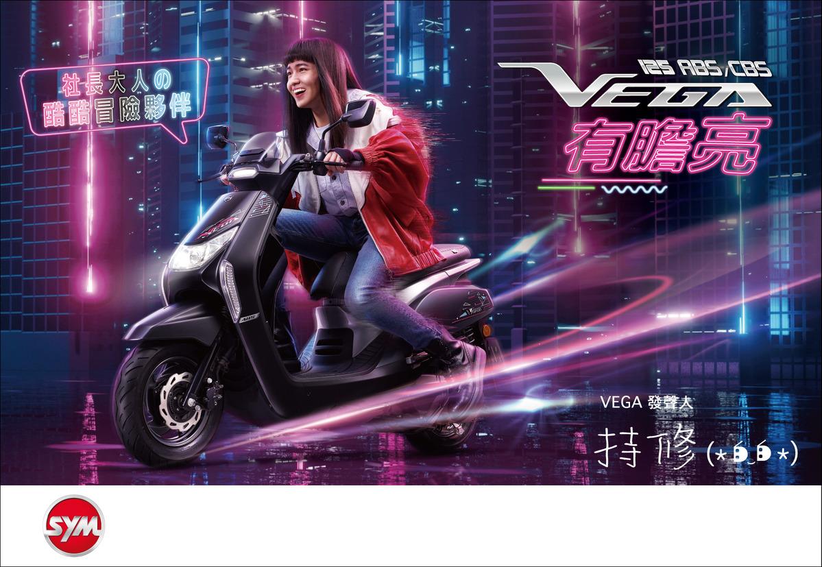 SYM特別邀請金曲新人王-持修,成為VEGA 125的年度發聲人,更邀請持修親自作詞作曲,唱出VEGA 與年輕世代的自我意念,持修獨特的氣質與敢做自己的態度,在創作中貼切地描繪出整個Z世代的心聲,態度面上與VEGA 125完美契合,兩方首度攜手合作,透過持修,將VEGA 125「有膽亮」的精神傳遞出去,3月份將帶來SYM VEGA X 持修驚喜之作以及一系列的企劃和活動,敬請大家期待。