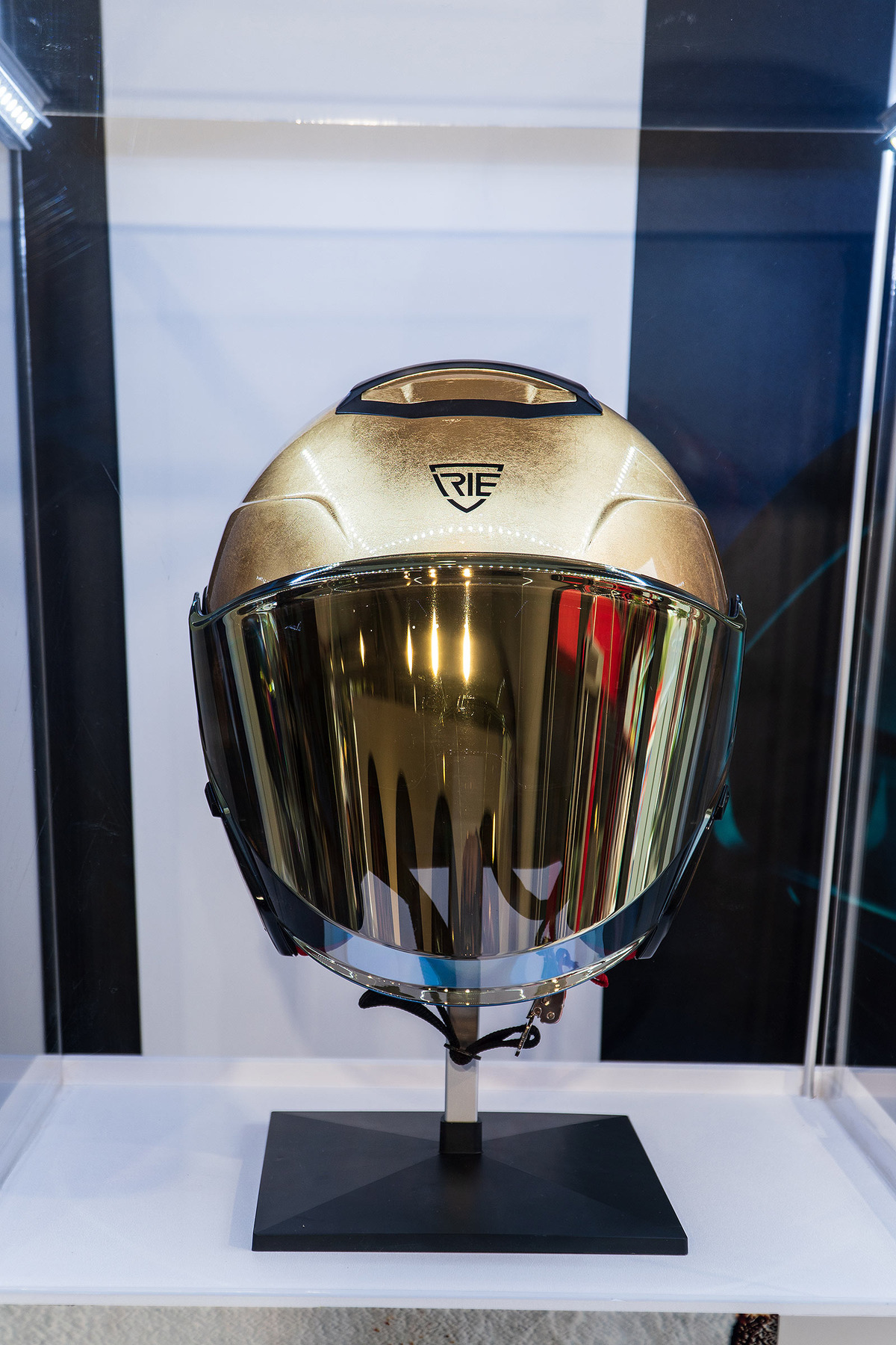 其中,最引人注目的焦點,莫過於外觀使用18K金箔貼金,閃耀著目眩神迷貴金屬光澤,且全球僅此一頂的NOVA-Forged Gold鍛造金安全帽。帽體外觀可以清楚看到手工貼金的工藝痕跡,質感絕非一般金粉噴塗可以比擬,更證明安全帽同樣能夠作為最佳主角在眾人面前閃耀。NOVA-Forged Gold鍛造金安全帽將在活動結束後作為會員專屬贈品送出,得獎者將在IRIE Helmets會員中抽出。