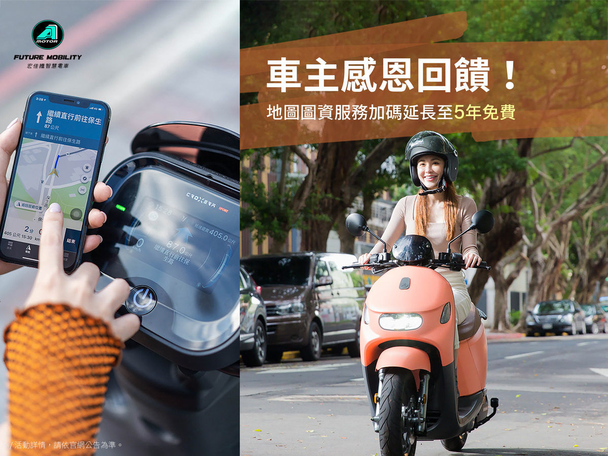 此外,為了感謝車主對宏佳騰的支持與肯定,對於車主關注的智慧儀表免費更新圖資及使用授權期限問題,宏佳騰也宣布,智慧儀表所採用的HERE Maps圖資免費更新將由原先的3年延長至5年(自購車日起算),讓愛車可繼續免費享有即時路況資訊。